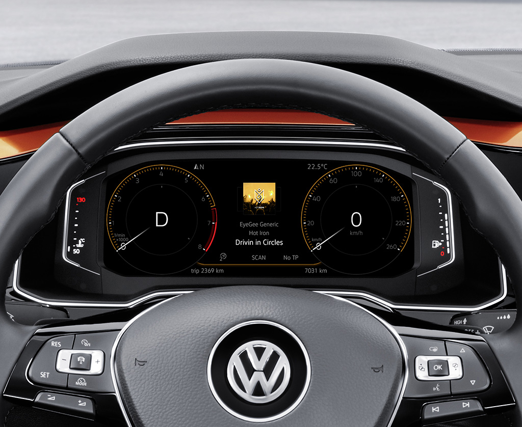 Kromě toho slaví v modelu Polo – v prvním modelu značky Volkswagen i celého koncernu – premiéru nová generace digitálního panelu přístrojů Active Info Display. Digitální přístroje s nevšední funkčností a intuitivním ovládáním jsou v tomto segmentu novinkou. Polo dostalo zároveň do vínku nejnovější generaci informačních a zábavních systémů s displeji o úhlopříčce 6,5 až 8,0 palce, opatřené skleněným povrchem. Ušlechtilý styl jako u nejkvalitnějších chytrých telefonů dotváří technický a čistý charakter interiéru.