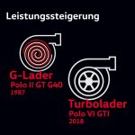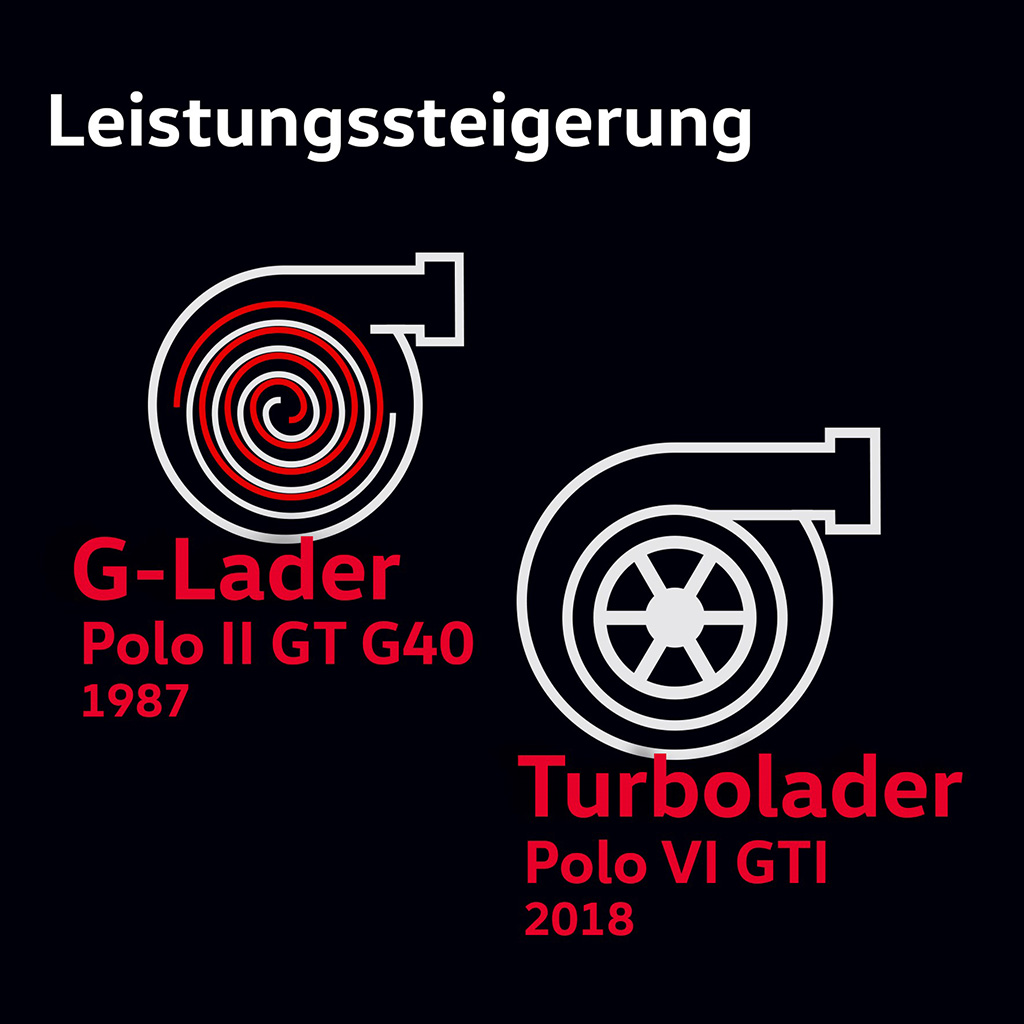 O „malém Wolfswagenu“ – vlčím voze – hovořila tehdejší reklama na nové Polo GT G40. A rozhodně nepřeháněla. Pozoruhodný výkon 85 kW/115 k ze zdvihového objemu pouhých 1,3 litru, nejvyšší rychlost 196 km/h – to bylo v roce 1987 u malého vozu skutečně neslýchané. Za tím stálo mechanicky poháněné spirálové dmychadlo, které přivádělo do válců ochlazovaný stlačený vzduch, což vedlo k výraznému zvýšení výkonu. Označení „G40“ bylo odvozeno od tvaru dmychadla, který se podobá písmenu „G“.