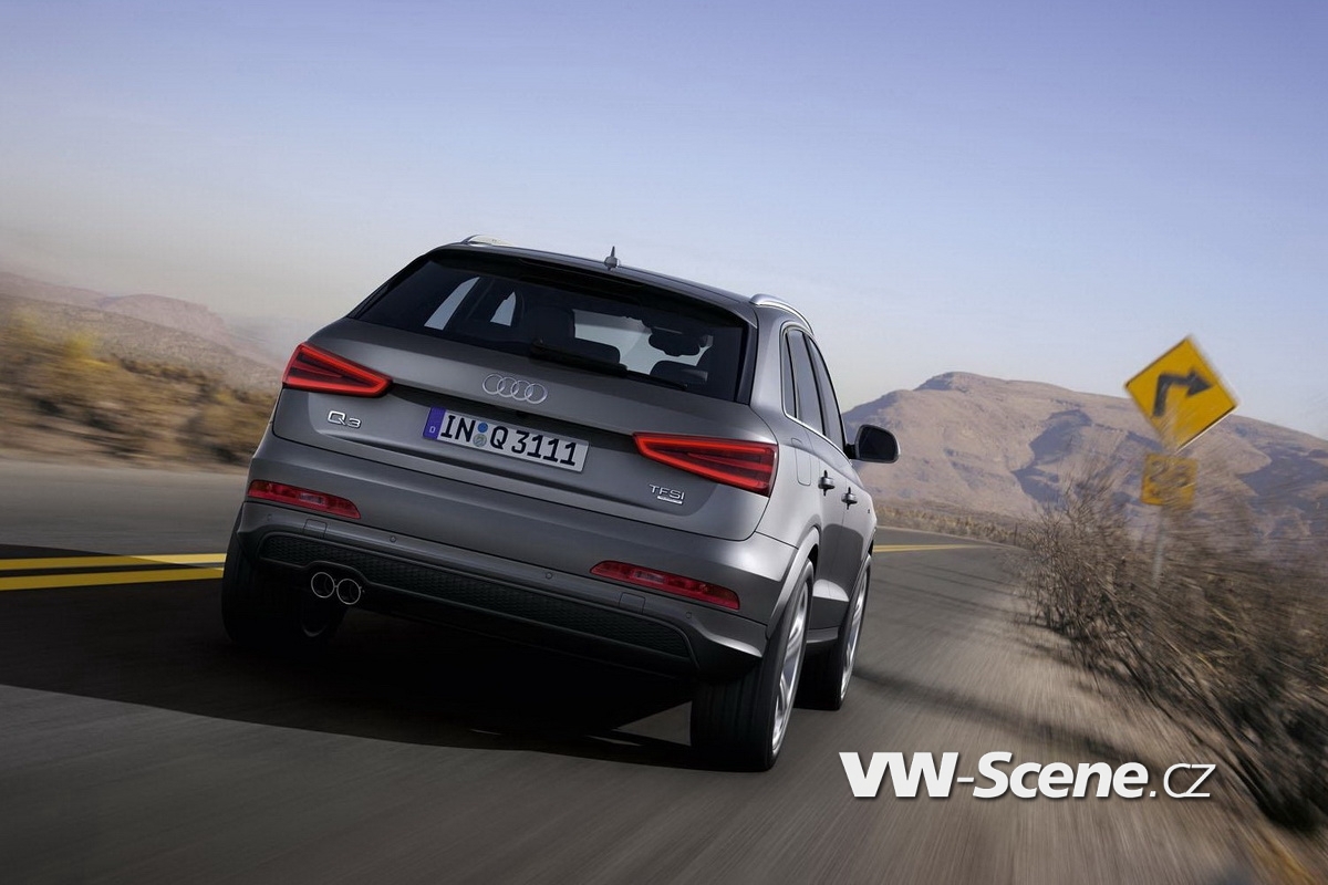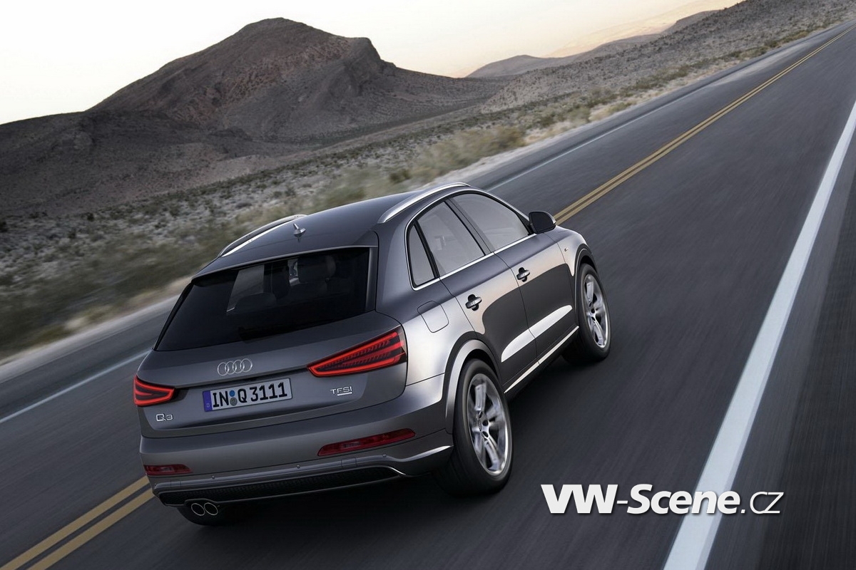 Po stránce designu zapadá Q3 do zbytku rodiny Audi jak jen může. Unifikovaná příď, profil nebo záď nemusí ani podtrhovat již standardní LED-ky a víte, na čem jste. Vnější rozměry 4,39×1,83×1,60 metru (DxŠxV) nejsou ničím výjimečným stejně jako ložný prostor 460 až 1.365 litrů, ale koeficient aerodynamického odporu vzduchu 0,32 už by mohl být. Audi oznámilo produkci Q3 v kombinaci se čtyřmi motory, čtyřválci – dva benzínové TFSI a dva naftové TDI. Zatímco dvoulitrové TFSI budou nabízeny ve variantě 170 koní a 211, diesely budou disponovat 140 koňmi a 177 koňmi. Točivý moment pak zasáhne spektrum od 280 do 380 Nm a zrychlení z nuly na stovku bude činit v nejlepším případě 6,9 sekund, stejně jako nejoptimálnější spotřeba bude činit jen 5,2 litru na sto kilometrů.