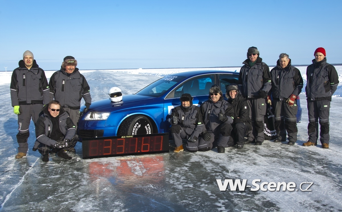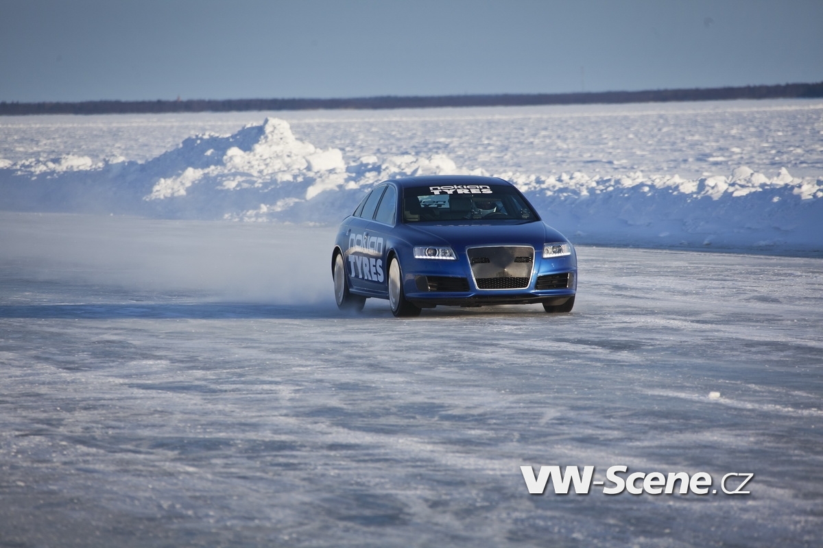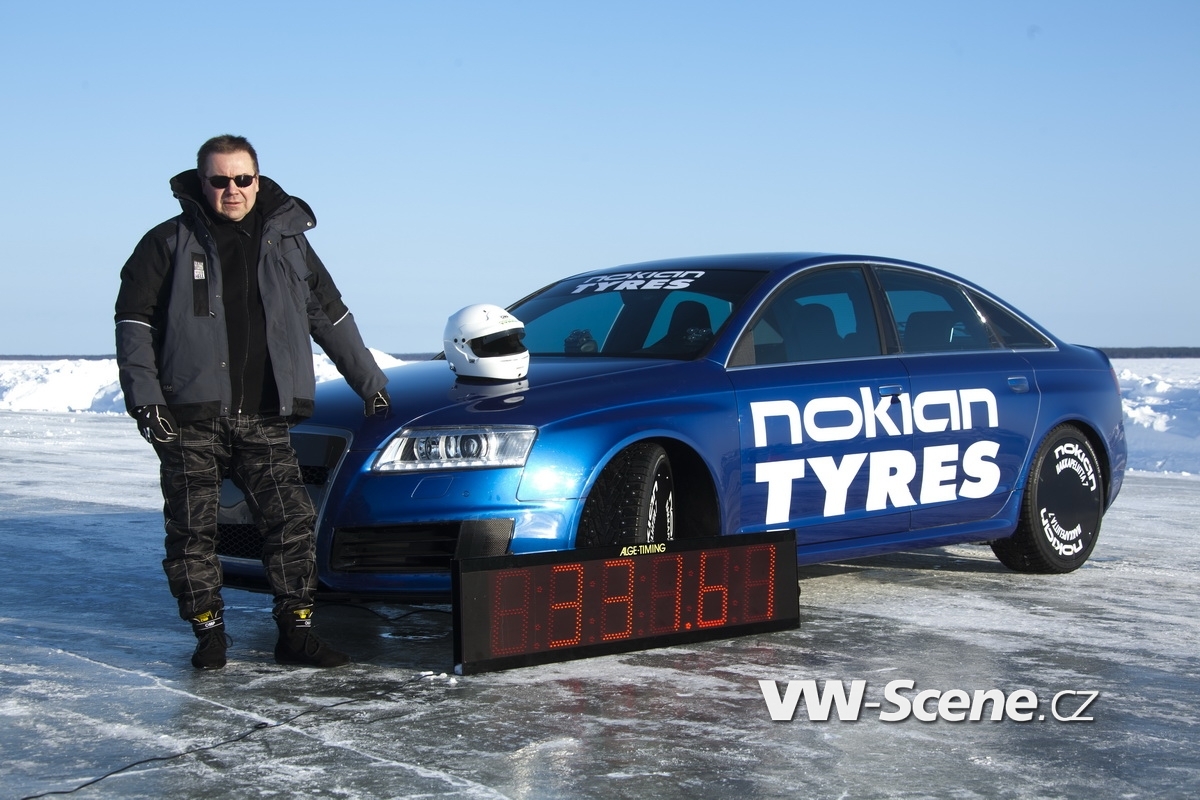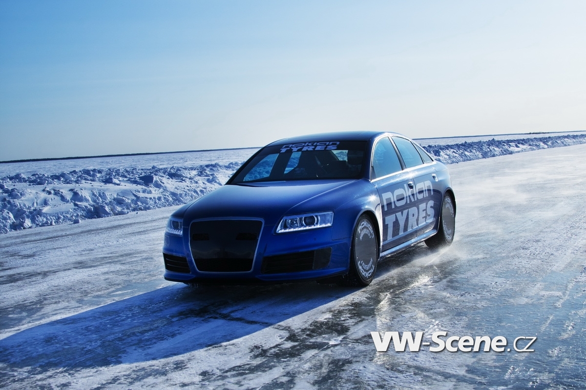 Ačkoliv vlastně volba na nejvýkonnější sedan v historii Audi padla oprávněně. Jen málokterý vůz se mu může rovnat a stačí jen drobné úpravy (především aerodynamické + odstranění omezovače na 250 km/h) a můžete se pustit do honby za rekordy. Nokian na to šel tak, že za volant posadil vlastního testovacího jezdce Janne Laitinena, auto obul na pneumatiky s hřeby Hakkapeliitta 7 rozměru 255/35 R20 97 T XL a zabral si na šestý březen čtrnáctikilometrovou zamrzlou trať. Prakticky to šlo jako po másle. Počasí se nechovalo nijak záludně, trať byla ve skvělé kondici a pilot s autem rovněž. Největší pozor si tak museli dávat technici na správný tlak v pneumatikách, protože v kalupu bezmála jednoho sta metrů ve vteřině není prostor na chyby. Dobrá věc se podařila a Nokian dosáhl svého: stanovil rychlostí rekord na ledu ve výši 331,61 km/h.