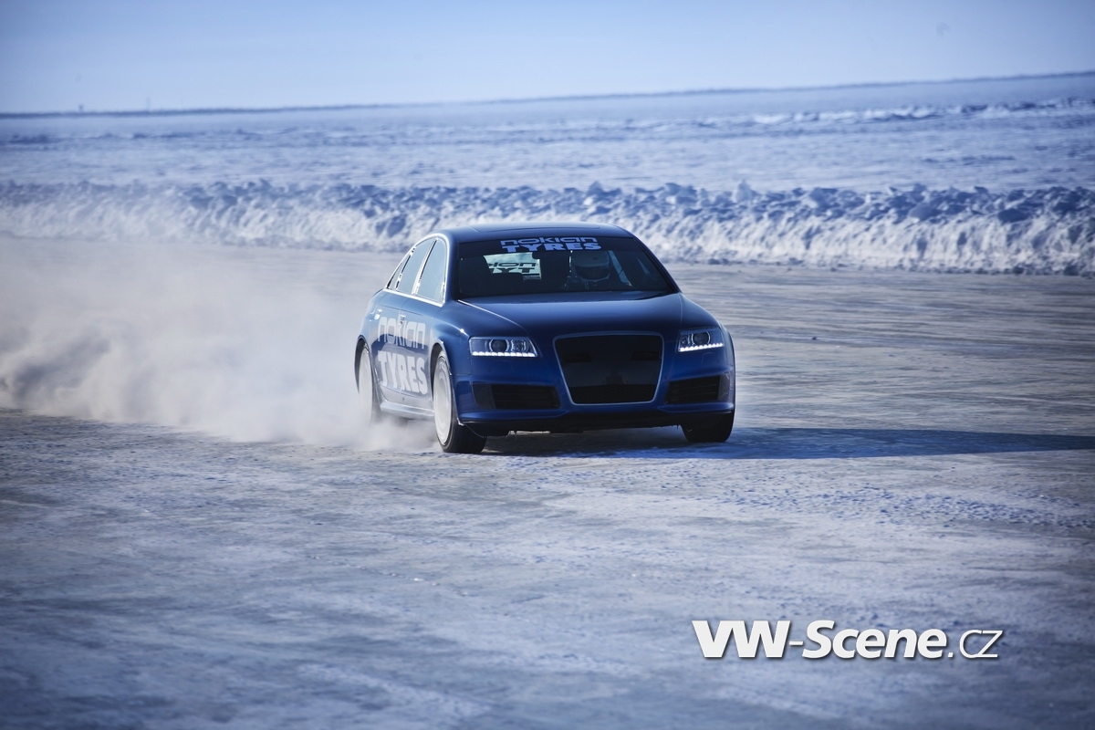 Jen několik týdnů zpátky slavil Bentley své prvenství se světovým rychlostním rekordem na ledu. Jenomže v dnešní době si nemůžete být jistí nikdy a ničím, takže na výsluní se Bentley Continental Supersports Convertible se svými 330,695 kilometry v hodině dlouho neohřál. Finský specialista na zimní obutí Nokian totiž v této disciplíně správně zavětřil velkou příležitost, kterou by byla věčná škoda nechytit za pačesy a neobrátit ji ve svůj vlastní prospěch. Že si k tomu vybral sedan Audi RS6, to už bylo podružné.