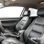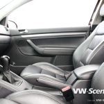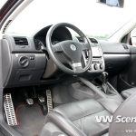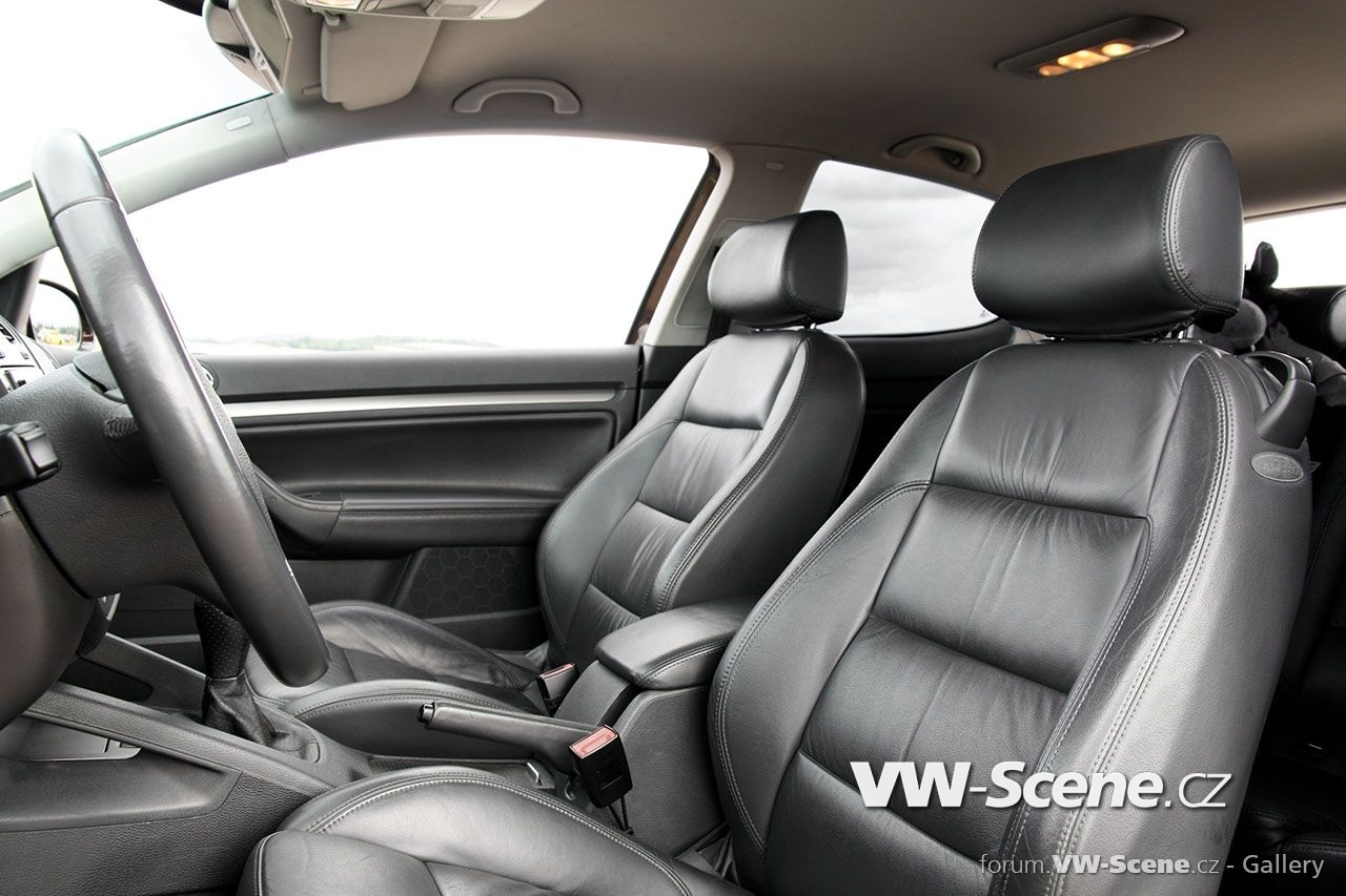 Interiéru vévodí originální sedačky v černé kůži, v níž jsou i výplně dveří. I zde byly použity doplňky z modelu GTI (pedály včetně nášlapu pro levou nohu, černé vnitřní zrcátko, volant) a unikátní řadička. O pohodovou hudbu se stará autoradio Pioneer AVH-P4300 DVD 2din doplněný o přední a zadní reproduktory BOSE.