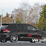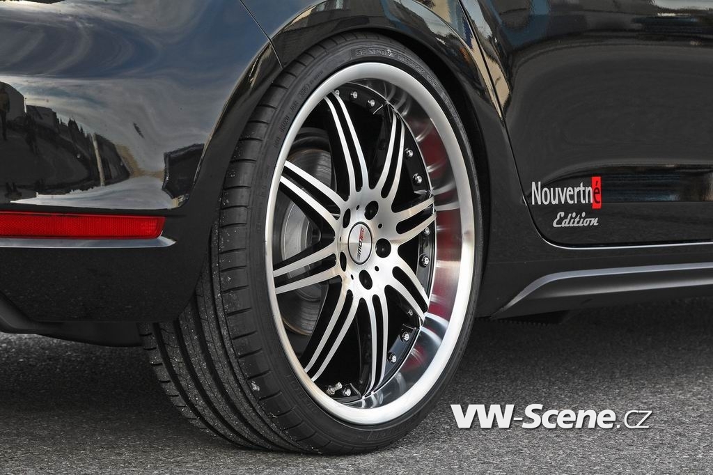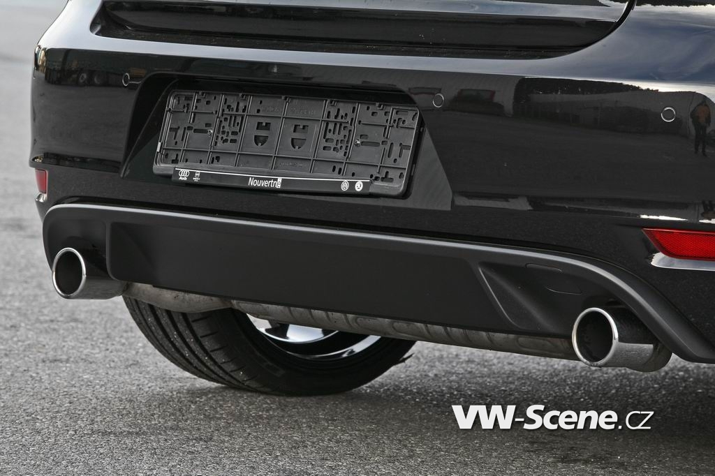 Vraťme se ale na chvíli zpět k podvozku. Naleznete zde sice jen výfukový systém, ale také nová masivní kola. Dostanete na výběr, jestli chcete 18ti, 19ti nebo dokonce 20ti palcové kola, což je na Golfa pořádná velikost. Rozměry v předu a vzadu jsou naprosto stejné, tedy 235/30 ZR20. Na těchto ráfcích jsou obuty pneumatiky Dunlop Sport Maxx, které budou nejspíše opravdu kvalitní, když se poslední dobou dávají na většinu přestavěných aut. Celý vůz byl nepatrně snížen, ale naleznete zde originální pružiny a tlumiče.