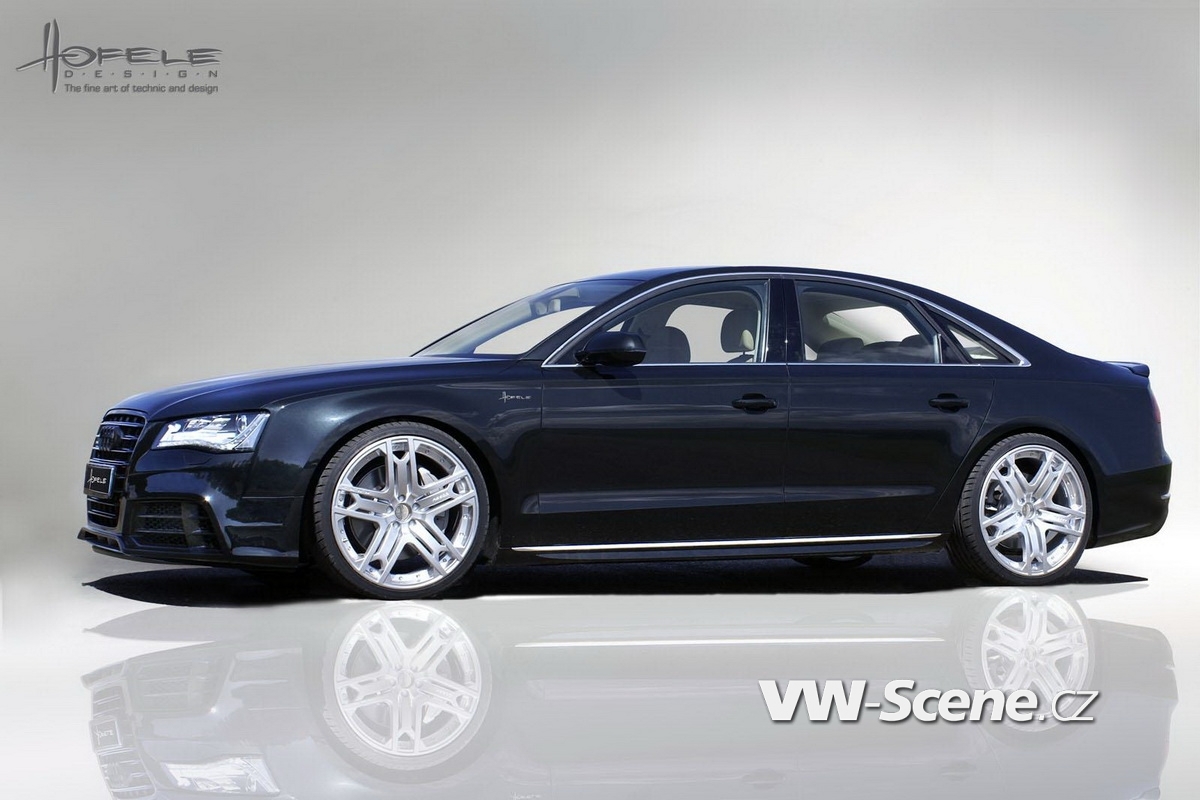 Vlajková loď Audi v podobě modelu A8 dostojí svému majestátu vždy, když ji potkáte. Platí to především o poslední generaci a abychom to zas až tak moc nepřeháněli, nesmí být v okolí nějaké opravdu hezké auto. Jenomže tohle malé „ale“ se rozhodl změnit německý renomovaný úpravce Hofele Design, který si při svém počínání kladl důraz právě a především na získání vyšší atraktivnosti. Té se rozhodl dosáhnout sestavením kitu, jehož obsahem jsou nové nárazníky inspirované Audi RS5 včetně zadního difuzoru nebo čtveřice koncovek výfukového potrubí.