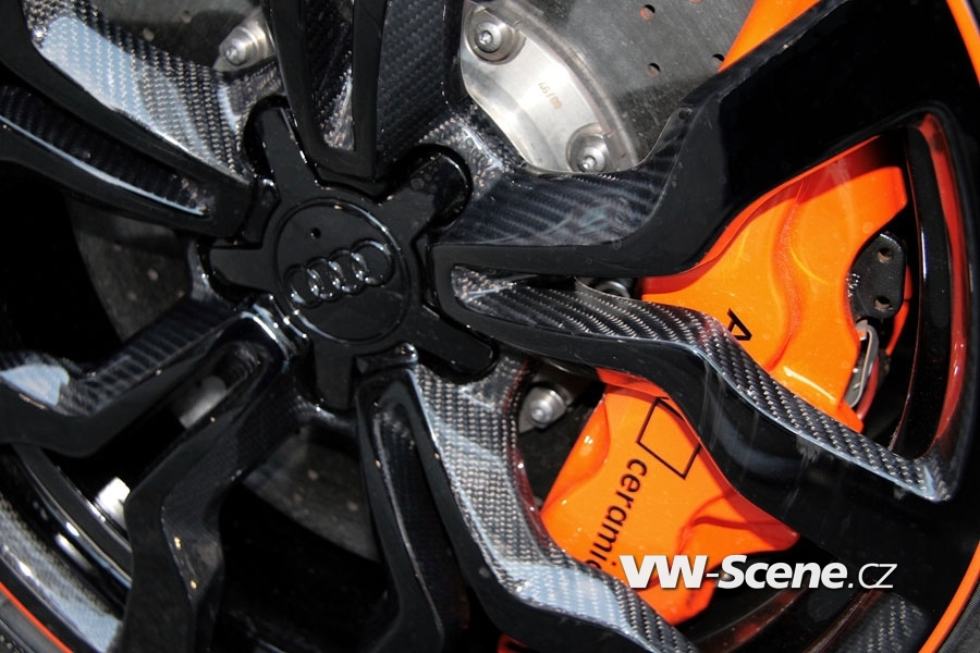 Nejnápadnějším prvkem jsou paprskovitá 19-palcová kola, na jejich ráfcích vyniká černá barva kombinovaná s carbonem a doplněná proužkem v barvě Orange Racing. Za nimi můžeme vidět i brzdové třmeny, které jsou opět v barvě Orange Racing.