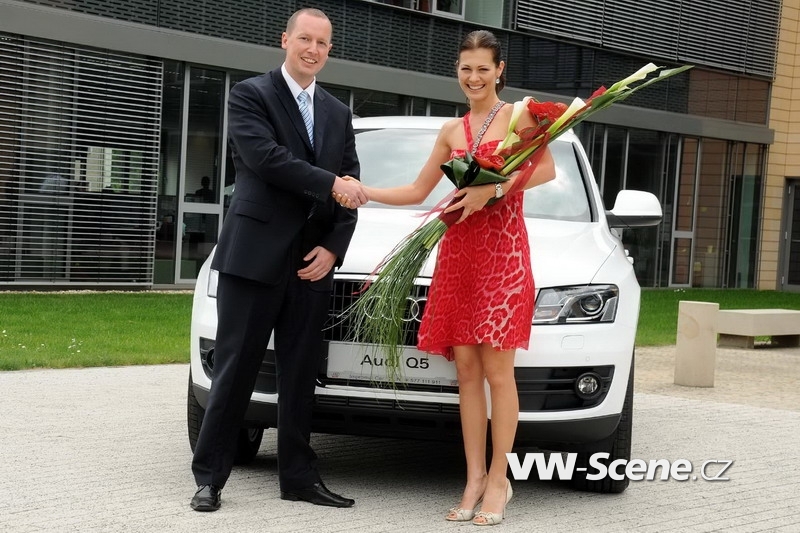 Jsem se značkou Audi velmi spokojená, nemám důvod měnit, komentovala svůj výběr Jana Doleželová, když z rukou Michala Šlajse, VIP&fleet manažera Audi, převzala klíče od svého nového Audi Q5.
