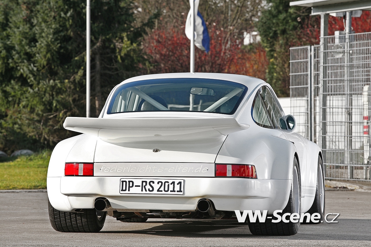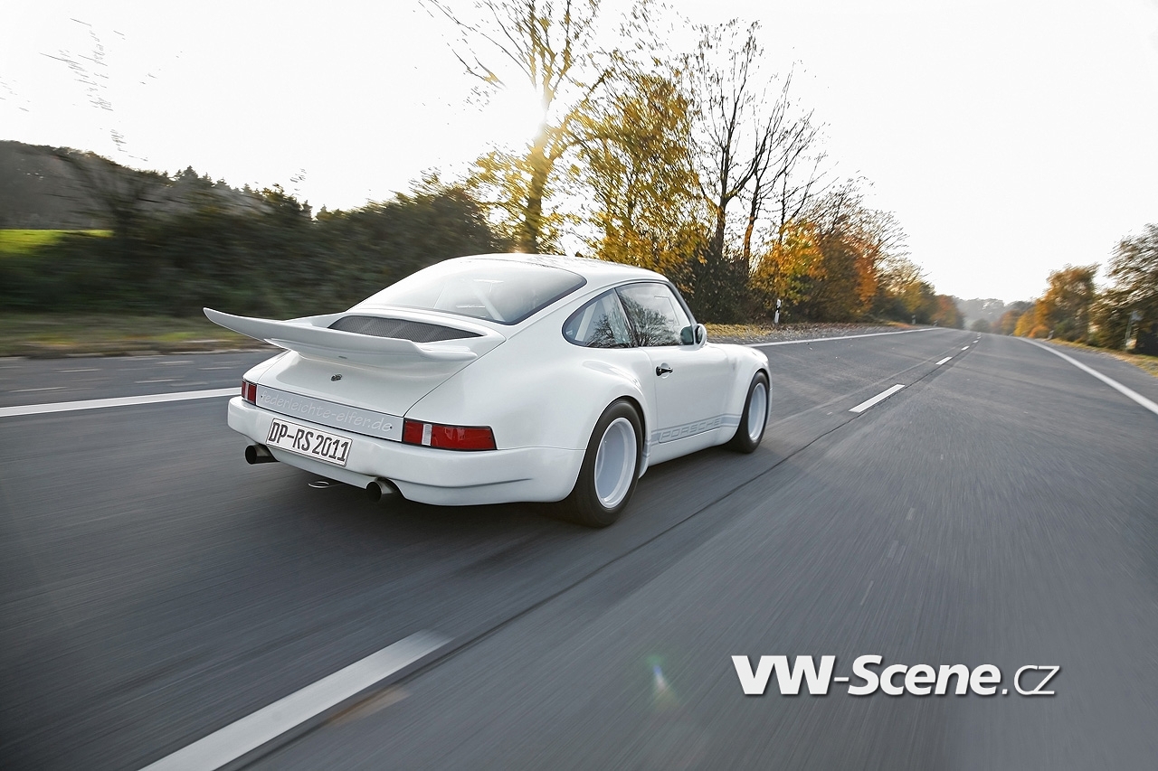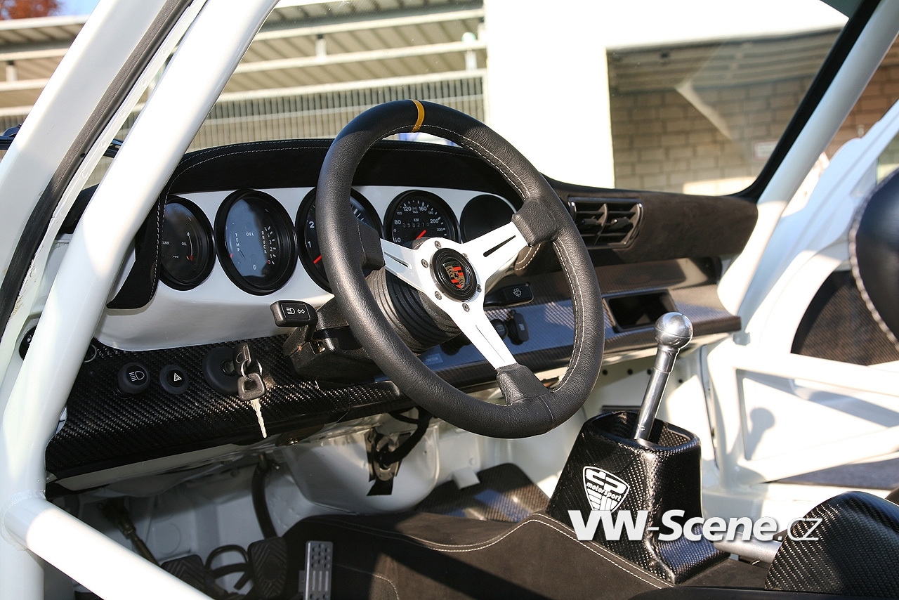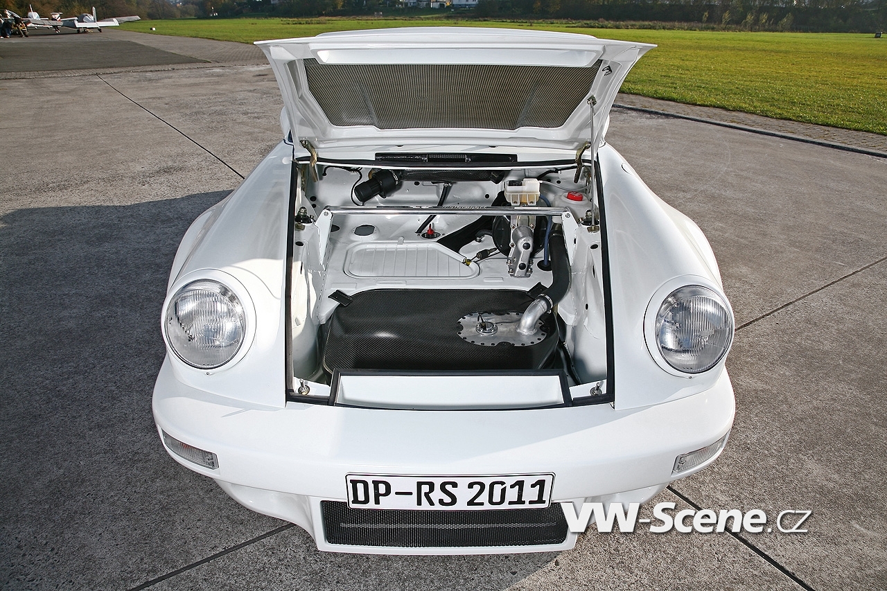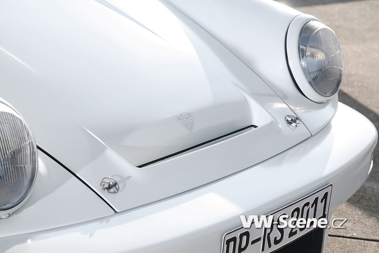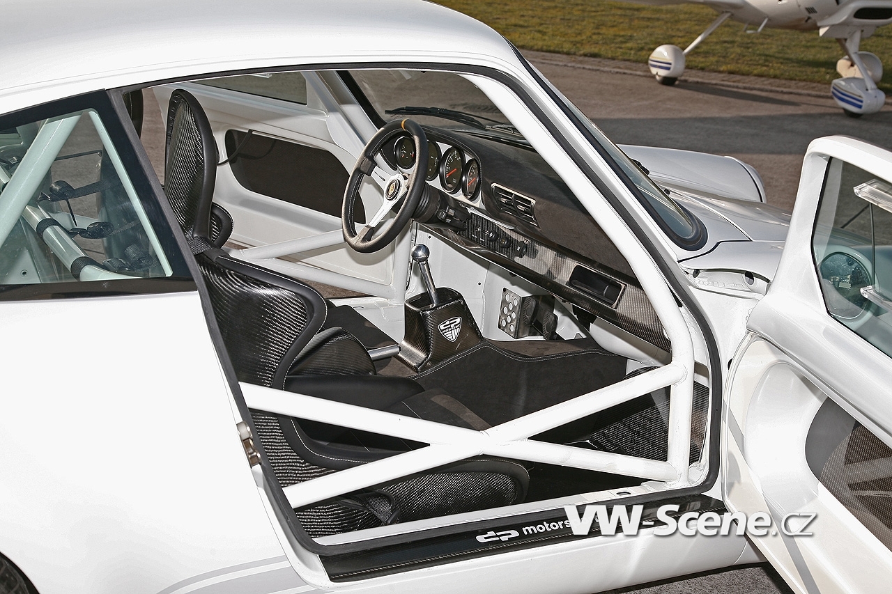 Představíme vám bílé Porsche 911 s motorem o obsahu 3,6 litru oblečenou do bodykitu z uhlíkových vláken. Z nich jsou vyrobeny přední nárazník, kapota, blatníky, dveře a spoiler. Vyměněny byly i okna, která mají nyní zelené tónování. Pro odlehčení byla upravena i světla, ale třeba i kryt klimatizace a střecha, kde našlo opět uplatnění uhlíkové vlákno.