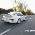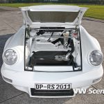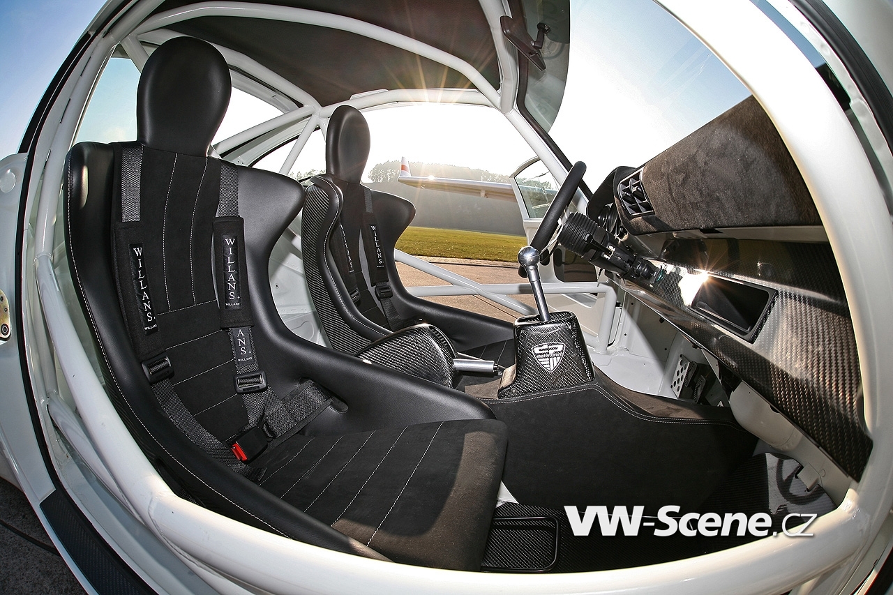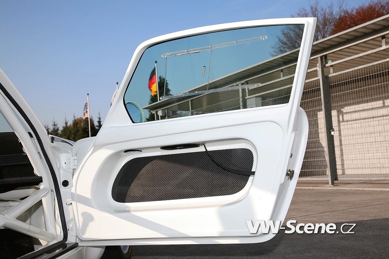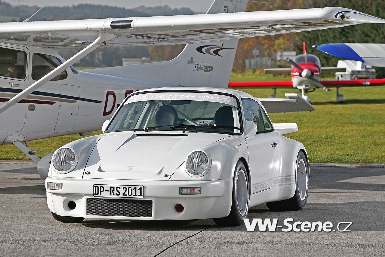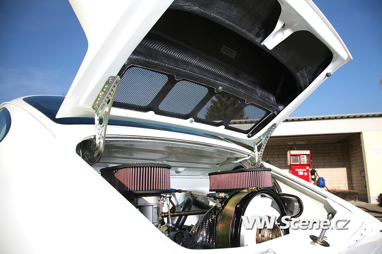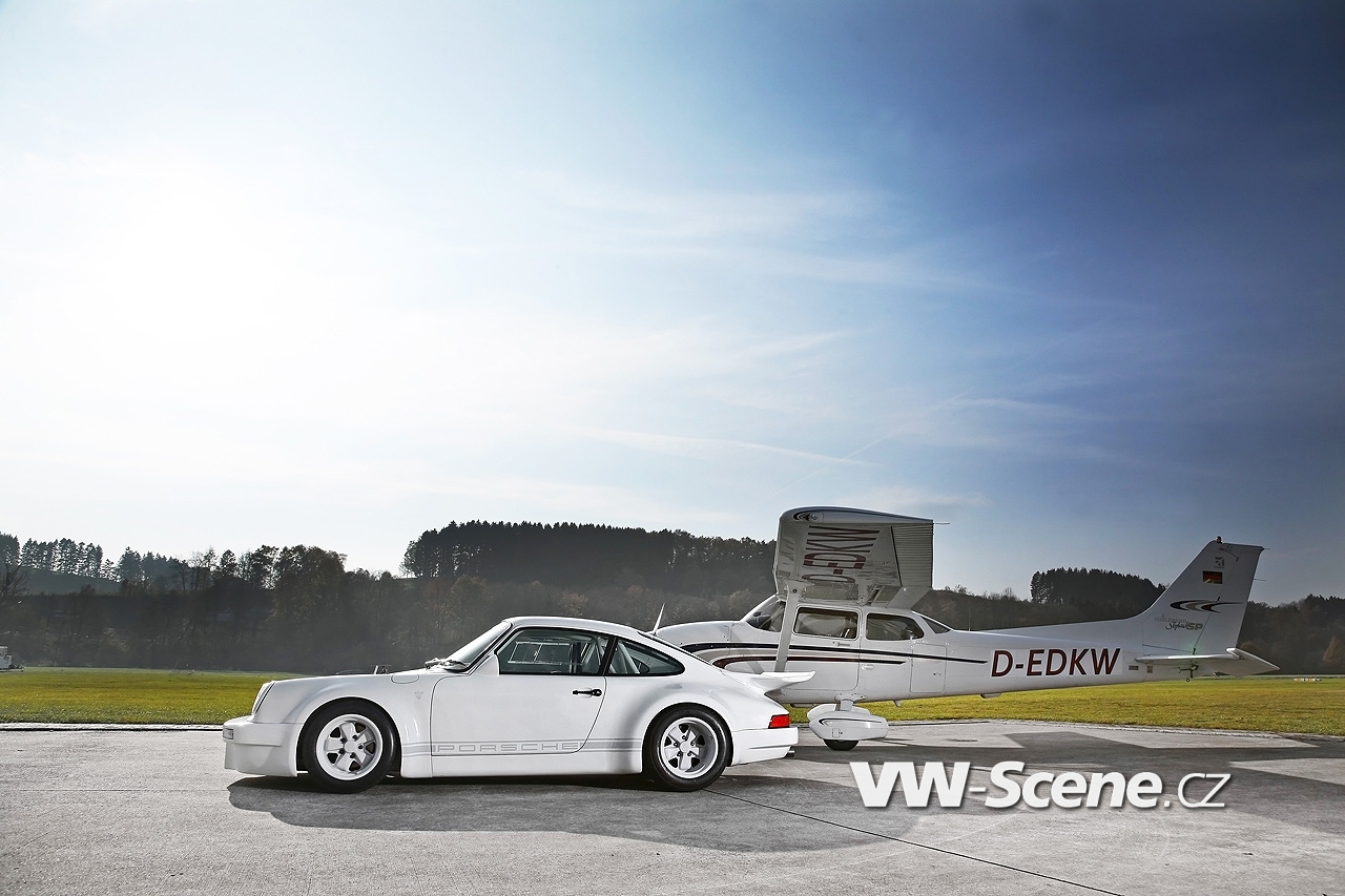 Představíme vám bílé Porsche 911 s motorem o obsahu 3,6 litru oblečenou do bodykitu z uhlíkových vláken. Z nich jsou vyrobeny přední nárazník, kapota, blatníky, dveře a spoiler. Vyměněny byly i okna, která mají nyní zelené tónování. Pro odlehčení byla upravena i světla, ale třeba i kryt klimatizace a střecha, kde našlo opět uplatnění uhlíkové vlákno.