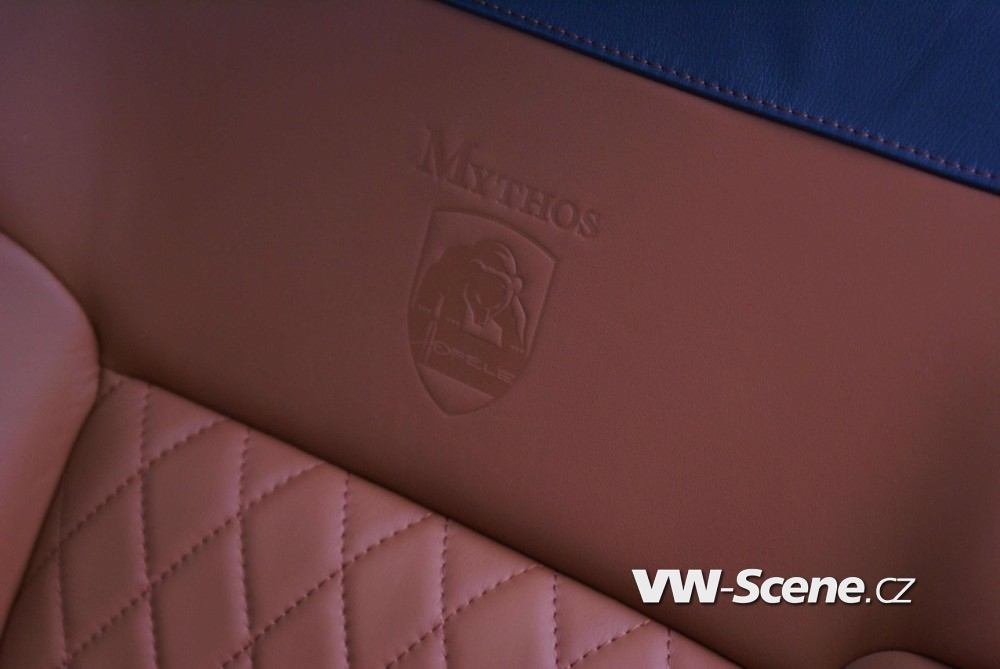 Co se týče vnitřku vozu, tak zde proběhli veliké změny. Převážně však jen na designu. Jediné co je zde vyměněné, tak je volant, který je jak jinak než multifunkční a nová přístrojová deska, která nyní působí řekněme luxusnějším dojmem a nalezneme zde spoustu menších budíků. Jinak je zde samozřejmě kůže, která je v kombinaci se dřevěnými doplňky. Takřka na každém kousku auta je nápis Mythos, což je až trochu přehnané, najdeme ho například také pod budíky.