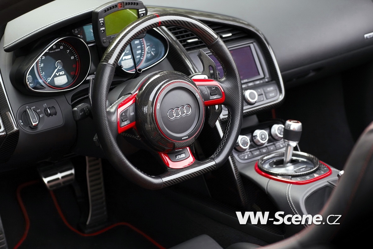 Všechno to začalo pod kapotou, kde RENM Performance ustájil dalších 75 koní navíc. Desetiválec objemu 5,2 litrů si ponechal atmosférické plnění, avšak karbonový sací trakt a výfuk s rychlejším výplachem stejně jako modifikovaný motor-management pomohly dosáhnout z 525 na rovných 600 koňských sil a z 535 na 585 Nm. Nebo alespoň prozatím. Na další ladění neměli v RENM Performance čas, protože chtěli stihnout zapracovat ještě na zevnějšku, aby zákazníkům nabídli profesionálně vypadající komplexní úpravu.