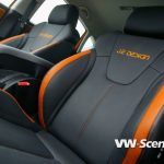 Když otevřete dveře a usadíte se do vozu, tak na vás čeká také docela povedený interiér, který je kombinován jak jinak, než černou a oranžovou barvou. Pro sportovnější jízdu zde naleznete sportovní kožené sedačky. Jinak žádné větší změny zde nečekejte kromě již zmíněných oranžových doplňků.