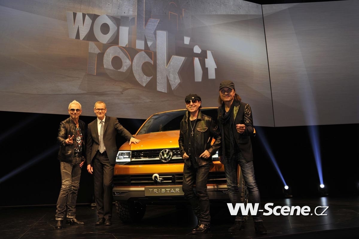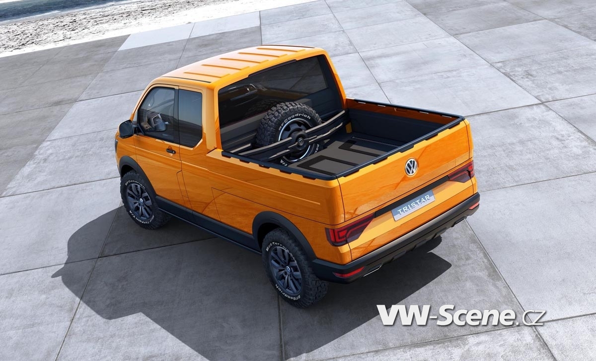 Transporter budoucnosti. Volkswagen Užitkové vozy představuje u příležitosti letošního veletrhu IAA koncepční vozidlo s legendárním názvem TRISTAR. Mohutné vozidlo s valníkovou nástavbou a prodlouženou kabinou, stylovým obloukem za kabinou a krátkým rozvorem disponuje trvalým pohonem všech kol s mechanickou uzávěrkou zadního diferenciálu a světlou výškou zvýšenou o 30 milimetrů. Designéři navrhli velmi precizní, nové a přesto důvěrně známé tvarové řešení, které skvěle ladí s typovým označením. Dojem síly a šířky studie umocňují ostré linie, probíhající po celém obvodě vozidla, světlomety LED a přepracované uspořádání celé přídě. Monolitická přístrojová deska připomíná svým tvarem a jednoduchou funkčností dřívější modely VW Bus, přezdívané „Bulli“. Náklad lze rozdělit do dvou oddělených úrovní. Pod otevřenou ložnou plochou, na níž je umístěno náhradní kolo s terénní pneumatikou s hrubým vzorkem, se nachází prostorný výsuvný úložný prostor, který je chráněn proti pronikání vody i prachu. V interiéru je kromě otočných a posuvných sedadel řidiče a spolujezdce stolek až pro 20“ tablet, dále nejmodernější zvuková aparatura a systém pro pořádání videokonferencí. TRISTAR je tak ideálním místem pro porady. Dokonce bylo pamatováno i na stroj na espresso.