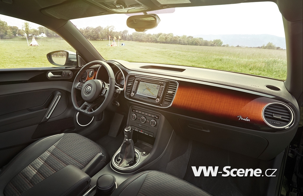Verze VW Beetle Fender se nejvíce odlišuje obložením palubní desky dřevem v barevné kombinaci připomínající slavné elektrické kytary Fender Stratocaster a čalounění sedadel prošívané nití v kontrastní barvě oproti čalounění. V interiéru a na předním blatníku nechybí loga Fender. Samozřejmostí je v této speciální kytarové edici sound systém od výrobce elektrických kytar Fender, který je na českém trhu za příplatek 18.100,- Kč. Tento hudební systém vznikl ve spolupráci společnosti Fender se značkou Panasonic. Audio systém s 10kanálovým digitálním zesilovačem a subwooferem má výkon 400 Wattů.