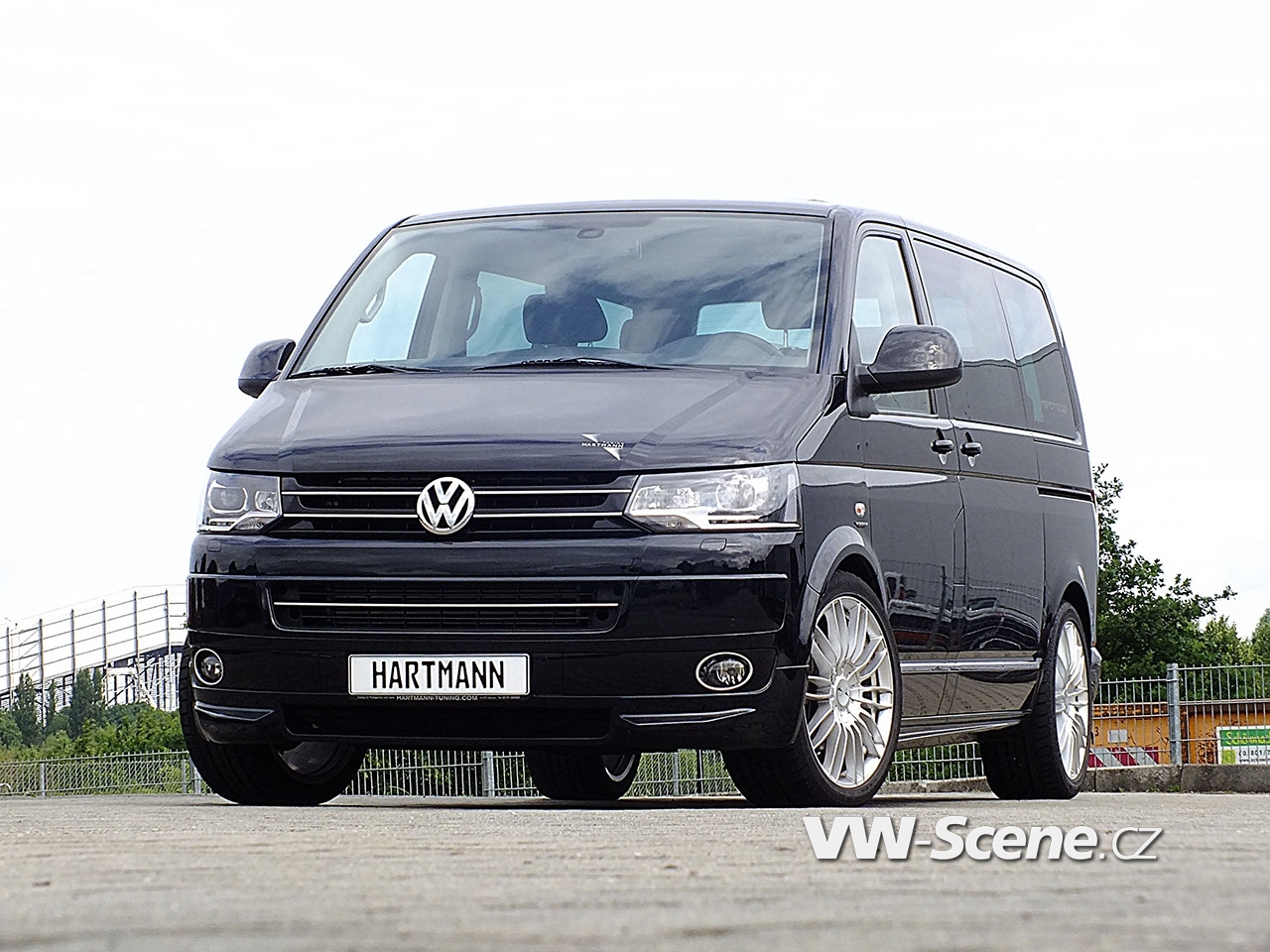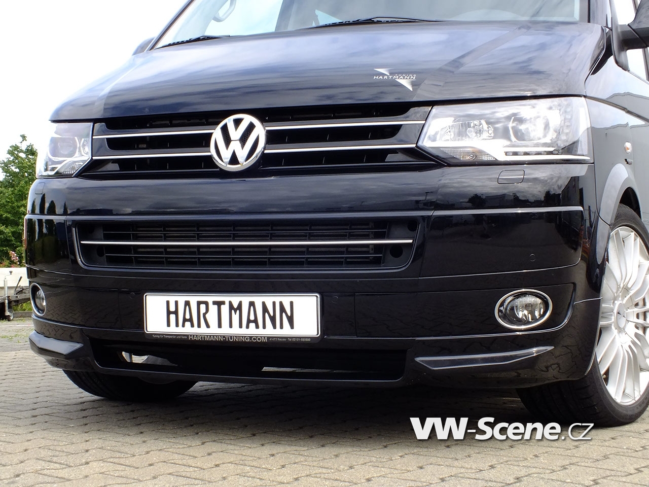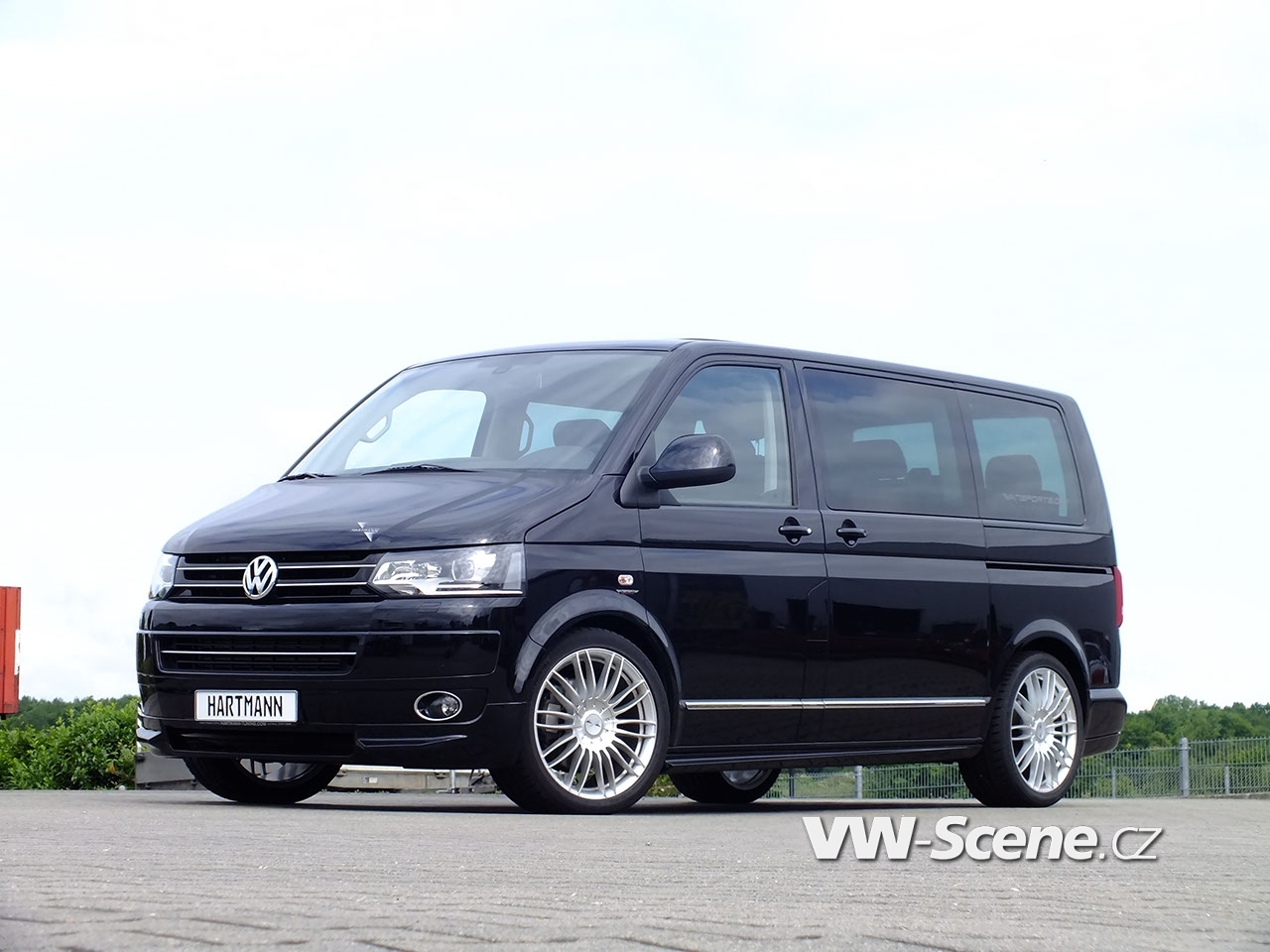 VANSPORTS Hartmann upravuje mnoho dodávek a nákladních modelů a tak výjimkou není ani VW T5, který je díky tomu agilnější, atraktivní a silnější. Pod kapotou je motor o objemu 2l – TDI, který po úpravě zvýšil svůj výkon ze základních 140 koňských sil na 166 koní a točivý moment se pohybuje v rozmezí od 340 Nm až po 395 Nm. Výkonu 212 koní a 460 Nm točivého momentu dosahuje 2l verze BiTDI. U všech motorů VW T5 má Hartmann vhodné úpravy řízení a výkonu, které optimalizují standardní T5 k rychlejší reakci za plynovým pedálem. Mimochodem ovládání škrticí klapky se také ve stejné podobě upravuje u modelů VW Amarok a VW Caddy. Zcela nové je u modelu VW T5 VANSPORTS zvučně znějící sportovní výfukové potrubí z nerezové oceli s dvěma 80 mm koncovkami na pravé straně. Pro dynamičtější vzhled pro jízdu po silnici nabízí Hartmann Tuning sportovní pružiny a tlumiče Bilstein se snížením o 35mm a také atraktivní styling příslušenství v podobě předního spoileru, prahů a zadního nárazníku. V nabídce nechybí ani výběr z mnoha různých kol s atraktivními povrchy. V neposlední řadě nechybí Hartmann hliníkové pedály a kartáčované hliníkové dveřní prahové lišty, které podtrhují a vyzdvihují sportovní vzhled automobilu.