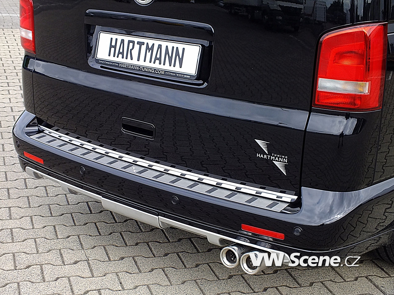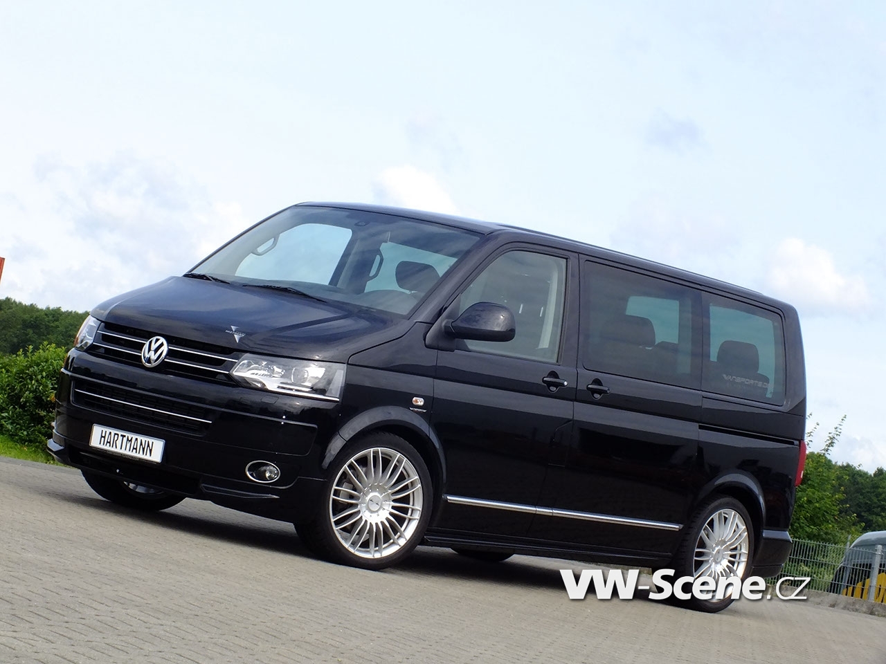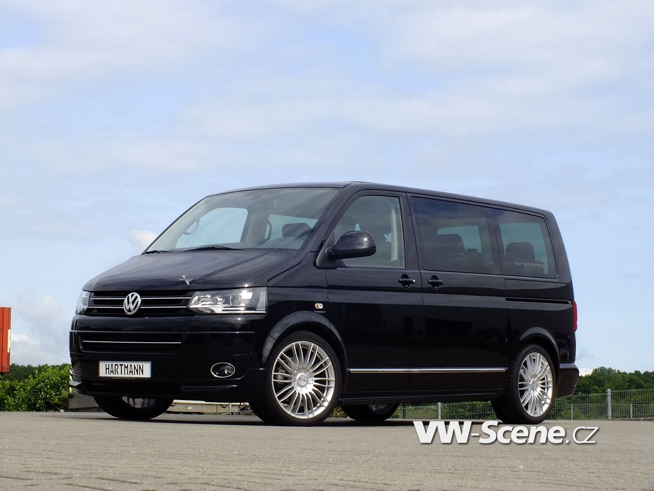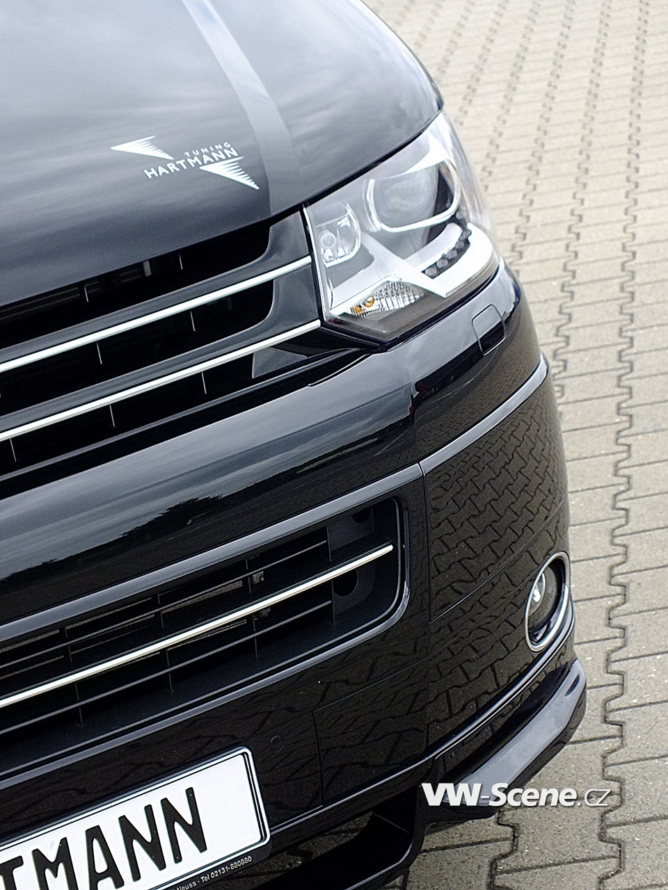 VANSPORTS Hartmann upravuje mnoho dodávek a nákladních modelů a tak výjimkou není ani VW T5, který je díky tomu agilnější, atraktivní a silnější. Pod kapotou je motor o objemu 2l – TDI, který po úpravě zvýšil svůj výkon ze základních 140 koňských sil na 166 koní a točivý moment se pohybuje v rozmezí od 340 Nm až po 395 Nm. Výkonu 212 koní a 460 Nm točivého momentu dosahuje 2l verze BiTDI. U všech motorů VW T5 má Hartmann vhodné úpravy řízení a výkonu, které optimalizují standardní T5 k rychlejší reakci za plynovým pedálem. Mimochodem ovládání škrticí klapky se také ve stejné podobě upravuje u modelů VW Amarok a VW Caddy. Zcela nové je u modelu VW T5 VANSPORTS zvučně znějící sportovní výfukové potrubí z nerezové oceli s dvěma 80 mm koncovkami na pravé straně. Pro dynamičtější vzhled pro jízdu po silnici nabízí Hartmann Tuning sportovní pružiny a tlumiče Bilstein se snížením o 35mm a také atraktivní styling příslušenství v podobě předního spoileru, prahů a zadního nárazníku. V nabídce nechybí ani výběr z mnoha různých kol s atraktivními povrchy. V neposlední řadě nechybí Hartmann hliníkové pedály a kartáčované hliníkové dveřní prahové lišty, které podtrhují a vyzdvihují sportovní vzhled automobilu.