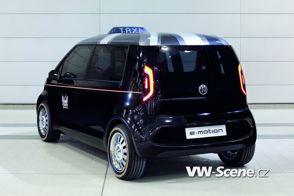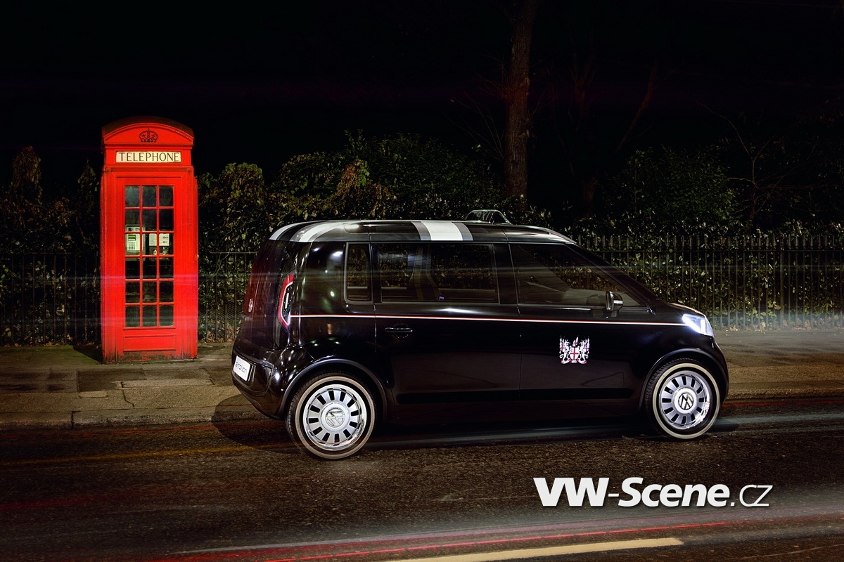 VW chtěl uhodit hřebíček přesně na hlavičku a využil aktuálního ekologického pekla ve svůj prospěch. Proto Taxi Concept představil jako automobil poháněný elektromotorem o výkonu 114 koňských sil získávaných z 45kWh li-ion baterie. Teoreticky by to mělo být dost na akční rádius tří set kilometrů a ačkoliv to není v provozu ve městě nijak důležité, byla nejvyšší rychlost stanovena na 120 km/h. Asi nikomu neušla netradiční koncepce rozvržení dveří, které jsou sice čtyři, ale včetně těch od malého kufru – posunutím řady sedadel se dá lehce nafouknout – a dvojice pravých (pro Británii by pochopitelně musely být nalevo) řidiče a přepravované osoby. Mezi pozlátka konceptu patří prosklená střecha, informativní displeje řidiče i posádky, případně světlé čalounění.