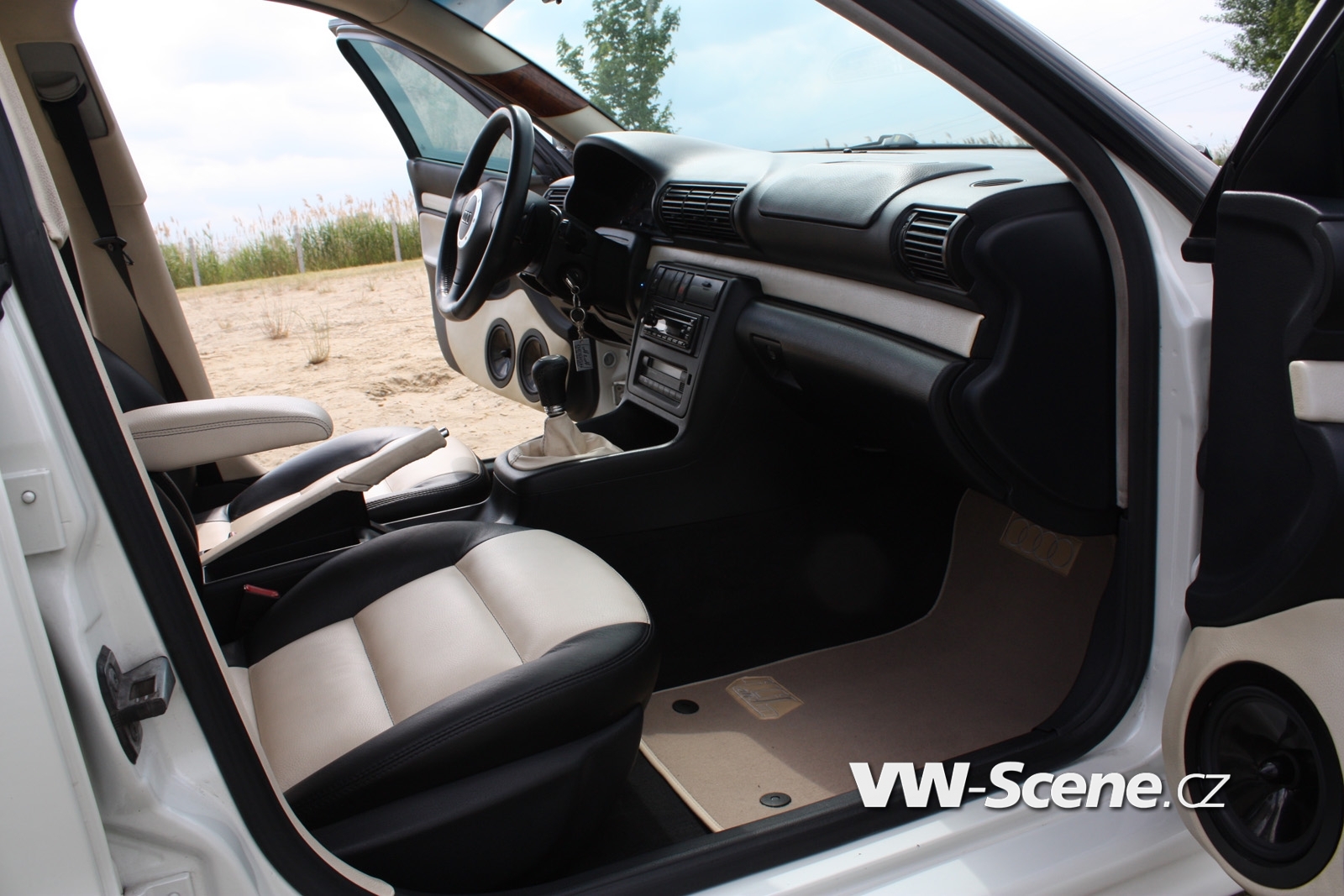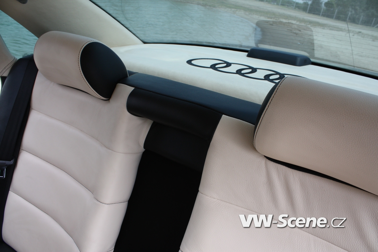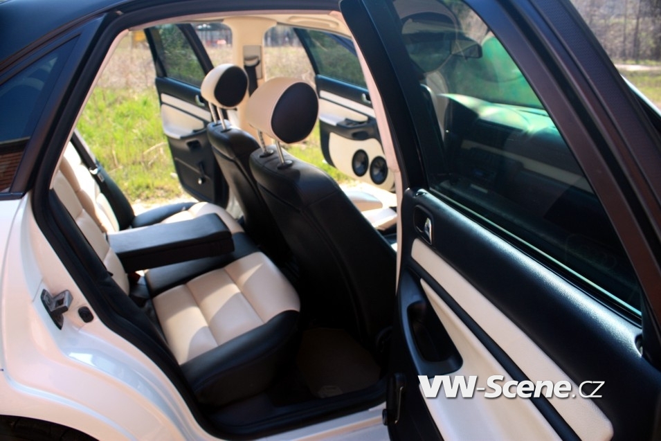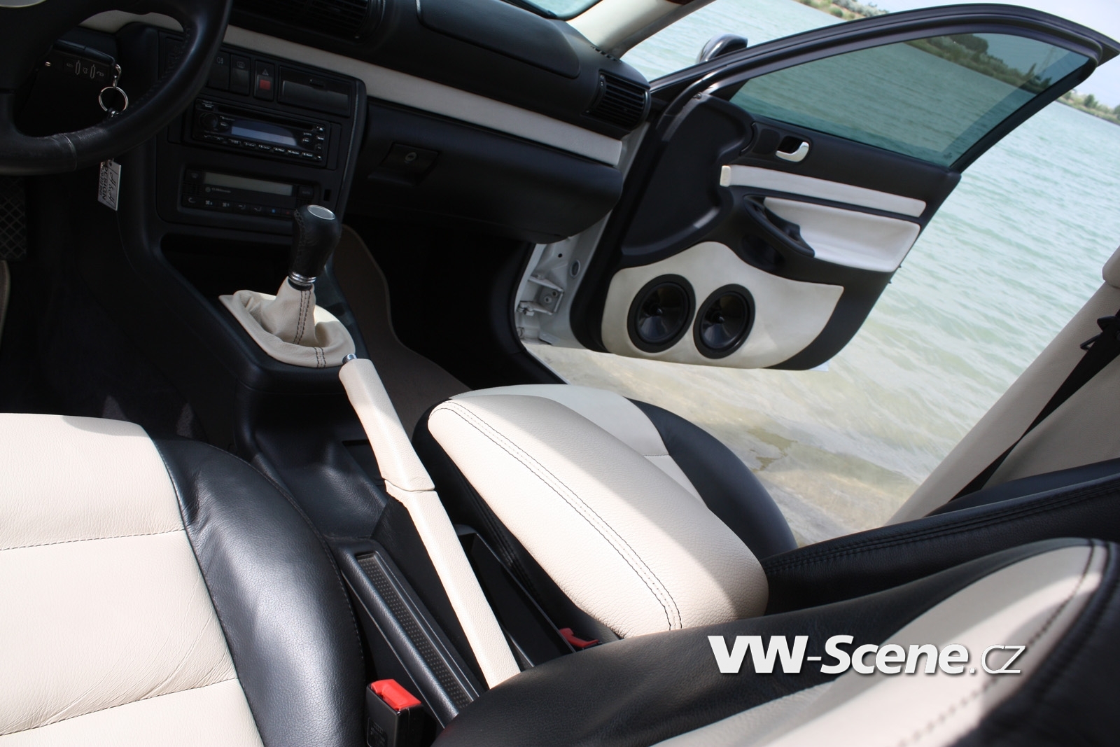 Pokud se podíváme do útrob automobilu, tedy to kabiny. Zde nezůstalo bez úprav takřka nic. Například volant, ten pochází z Audi TT. Celý interiér je v bílo-černé barvě, což působí pěkným dojmem, ale kdo z nás by to chtěl neustále čistit. Takřka vše je zde pochopitelně v kůži. Pro ještě sportovnějšího ducha je zde přidán manometr na tlak v turbu. V tuningovém autě nemůžete zůstat pozadu ani s audiem. Základem je kvalitní rádio s TFT displejem, které dále putuje celkem do tří aktivních zesilovačů. Není znám celkový výkon, ani to kolik je zde reprobeden, ale je jasné, že na prstech obou ruk je nespočítáte.