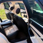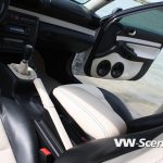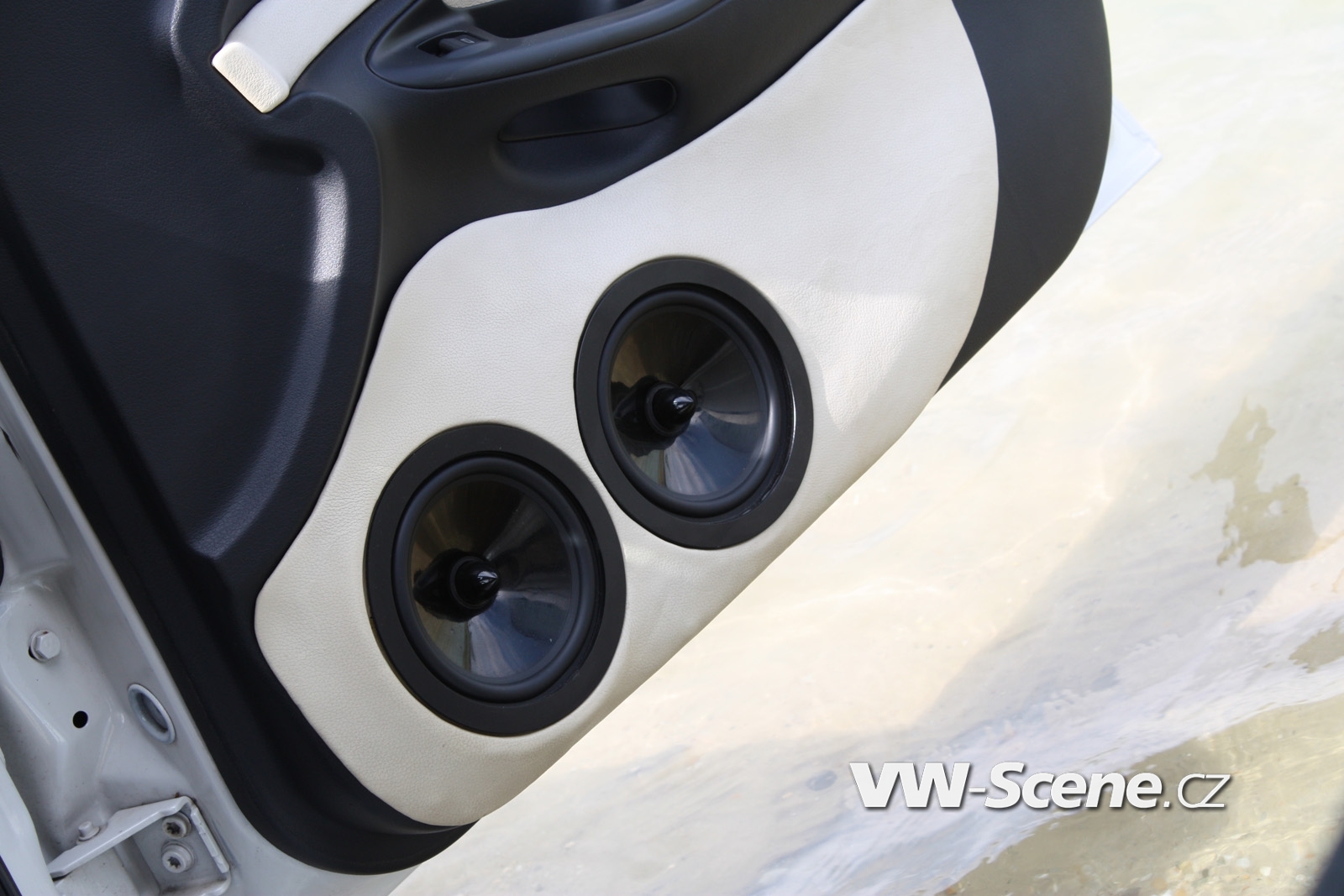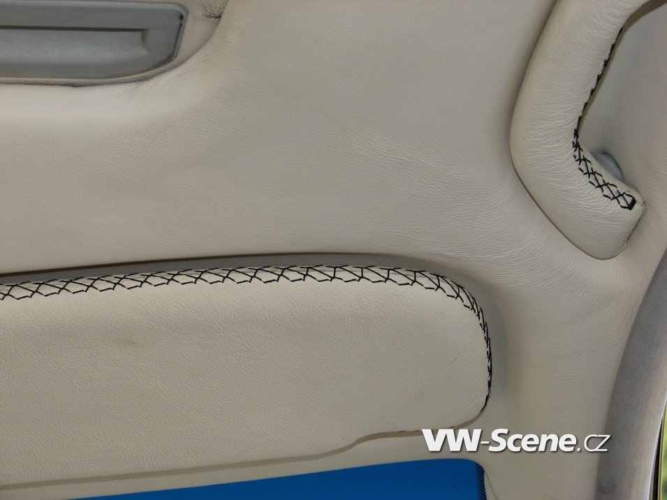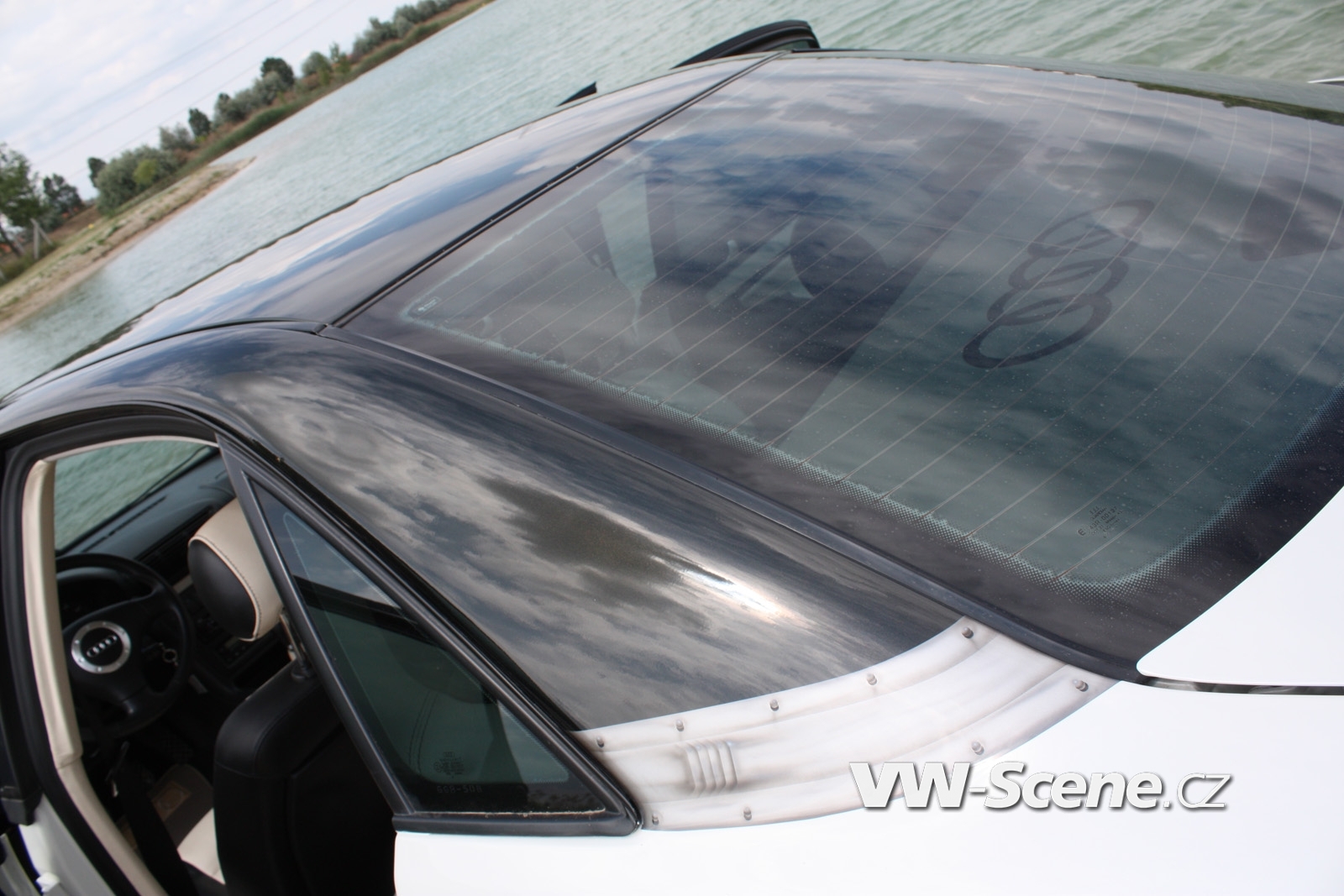 Pokud se podíváme do útrob automobilu, tedy to kabiny. Zde nezůstalo bez úprav takřka nic. Například volant, ten pochází z Audi TT. Celý interiér je v bílo-černé barvě, což působí pěkným dojmem, ale kdo z nás by to chtěl neustále čistit. Takřka vše je zde pochopitelně v kůži. Pro ještě sportovnějšího ducha je zde přidán manometr na tlak v turbu. V tuningovém autě nemůžete zůstat pozadu ani s audiem. Základem je kvalitní rádio s TFT displejem, které dále putuje celkem do tří aktivních zesilovačů. Není znám celkový výkon, ani to kolik je zde reprobeden, ale je jasné, že na prstech obou ruk je nespočítáte.