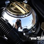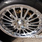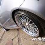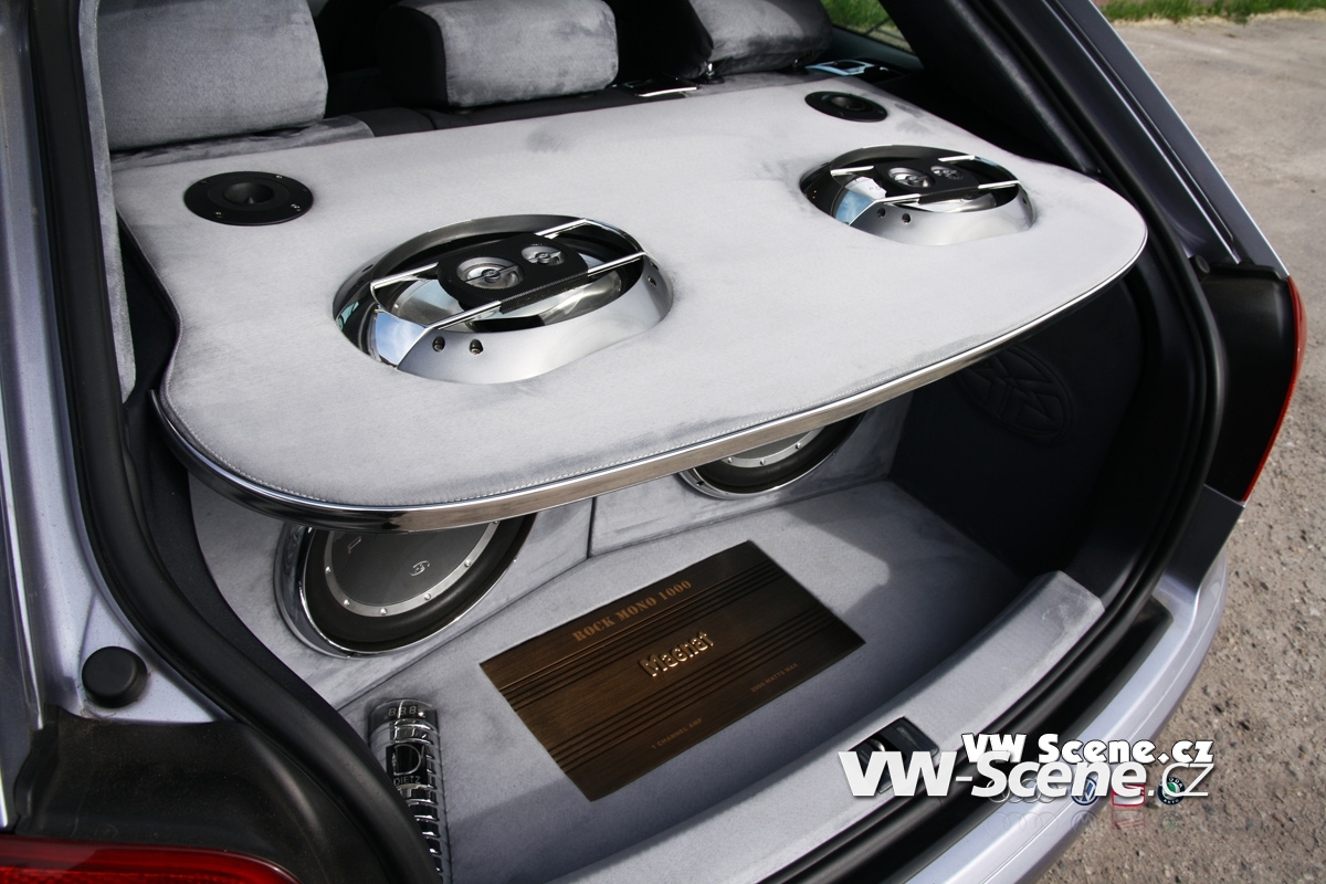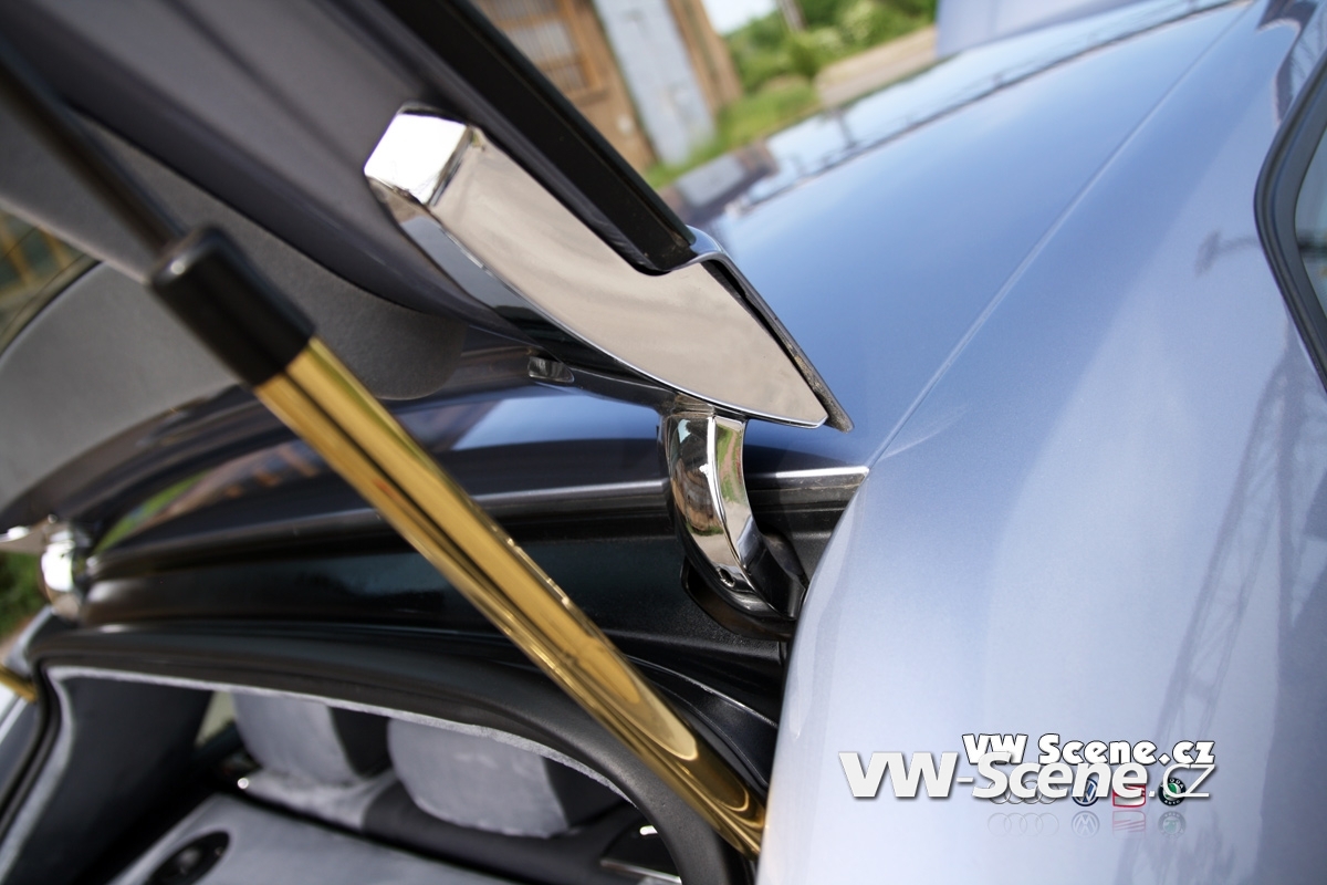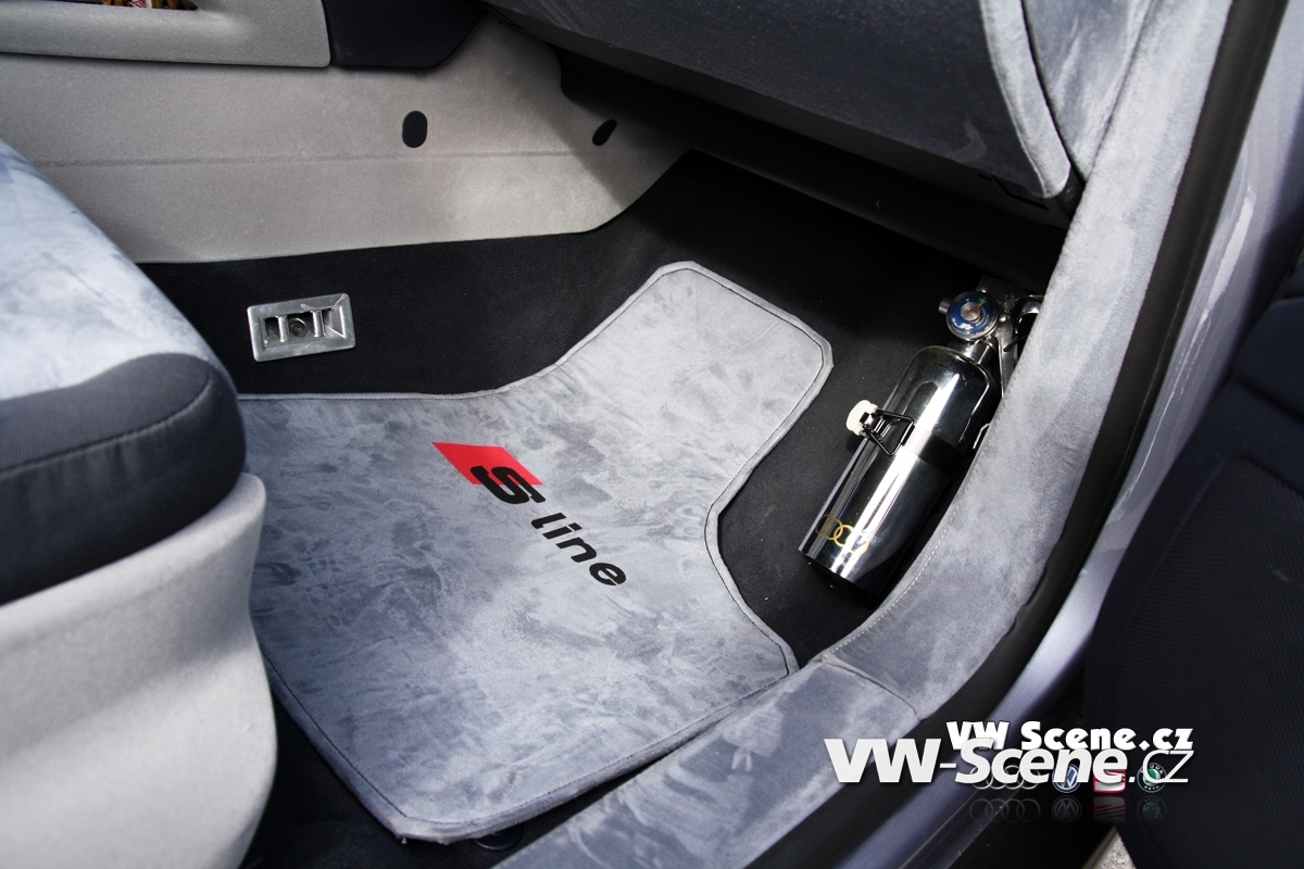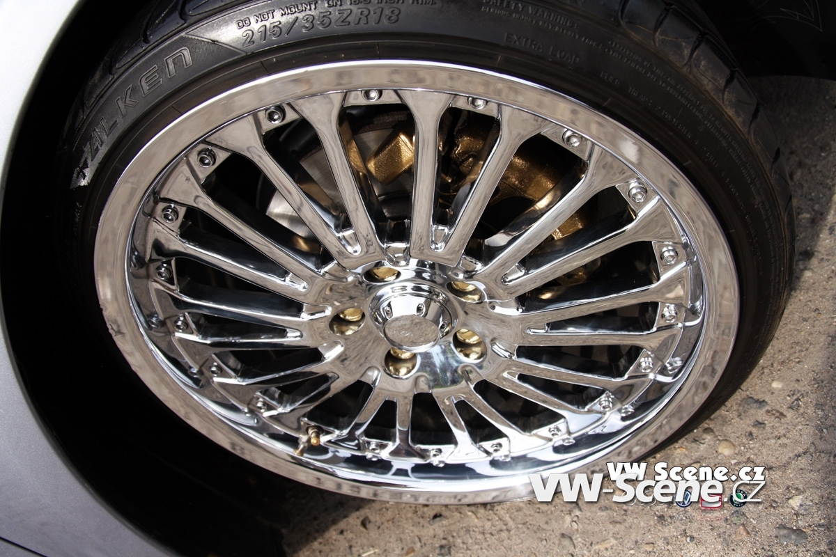 Co opticky nejvíce pomůže autům? Věřte nebo ne, ale je to snížení. Martin toto zlaté pravidlo tunerů moc dobře zná. Proto jeho A3 poslal k zemi o výrazných 70 mm na obou nápravách. U tohoto modelu se jedná o maximum, aby se auto dalo používat každý den a k běžným účelům. Štelovací podvozek V-Maxx si tedy moc často neodpočine, hlavně na našich „kvalitních“ silnicích. Chromovaná 18 palcová kola krásně ladí se zmiňovanými doplňky i odstínem karoserie. Další úpravy podvozkových částí jsou již estetické. Lakovaná jsou ramena, brzdiče, všechny plastové kryty a nádrž. Nezapomnělo se asi na pozlacené šroubky.