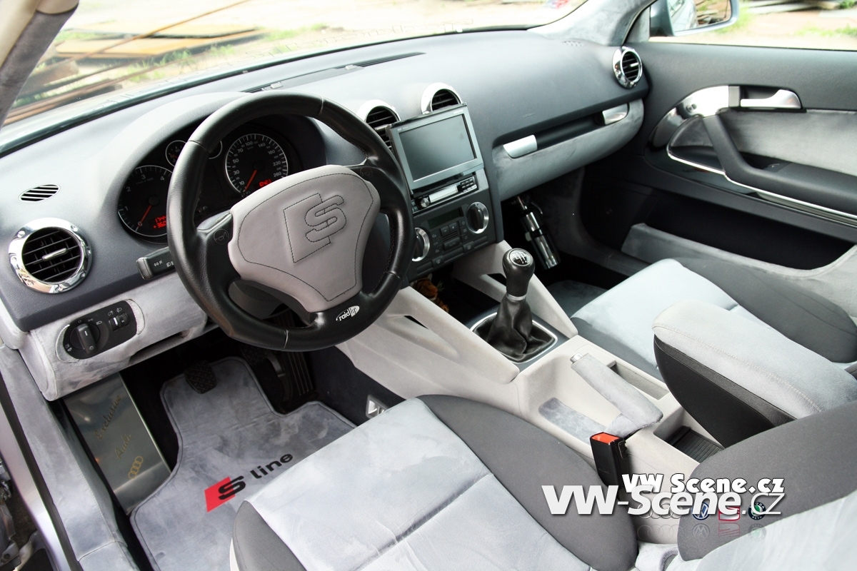 Možná nejsou tak křiklavé a do očí bijící, ale jak zjistíte z celého článku, rozhodně jich není málo. A upravovalo se úplně všude. Celá přední část karoserie, tedy nárazník, blatníky i kapota s chladičovou maskou se chlubí paketem verze S-line. Mračítka předních světlometů už nefrčí jako dříve, ale Audině pomohly k přísnějšímu kukuči. Zadní nárazník nezměnil nijak svůj tvar, jen je jeho spodní část nově lakována do barvy karoserie. Boky jsou vyzdobeny chromovými polepy B-sloupků a prahů. Víc ani nebylo potřeba, tvary modelu A3 jsou už z výroby velmi povedené a množství laminátových doplňků by výsledek jen zhoršilo.