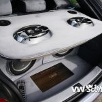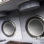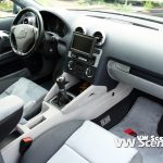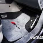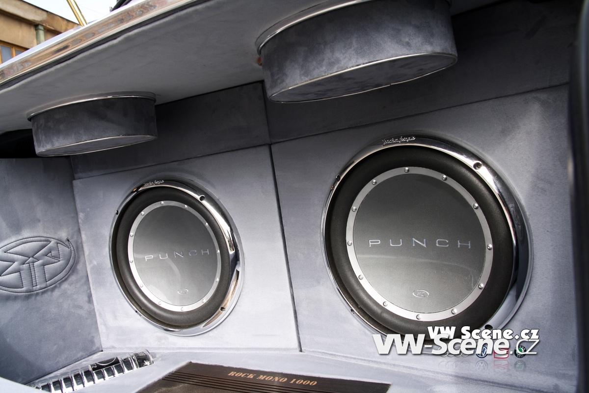Tento materiál se ve velké míře rovněž objevuje v interiéru. Přešité jsou středy sedaček a jejich zadní kryty, opěrky hlavy, spodní část palubní desky, obklady dveří, prahové lišty, sloupky a dokonce i zavazadlový prostor. Mikroplyš doplnil další oblíbený materiál úpravců – Flock. Ten se uvelebil na středovém tunelu, bocích sedadel, krytu zadních dveří, madlech a slunečních clonách. Nechybí, stejně jako v motorovém prostoru, chrom. Ten pokryl zpětné zrcátko, lišty dveří, rámečky výdechů topení, dokonce i osazení dvojice subwooferů Rockford Fosgate v kufru. Původní velký volant byl nahrazen kouskem od firmy Raid. Martin ale myslel i na své bezpečí a tak zvolil sice menší a sportovnější volant, ale rovněž vybavený airbagem, stejně jako originál. Originální hifiaparaturu nahradily zadní ovály, přední komponenty, dvojice zesilovačů rovněž od Rockford Fosgate. Hlavní čelní jednotku s přehrávačem DVD a LCD obrazovkou dodala firma Alpine.