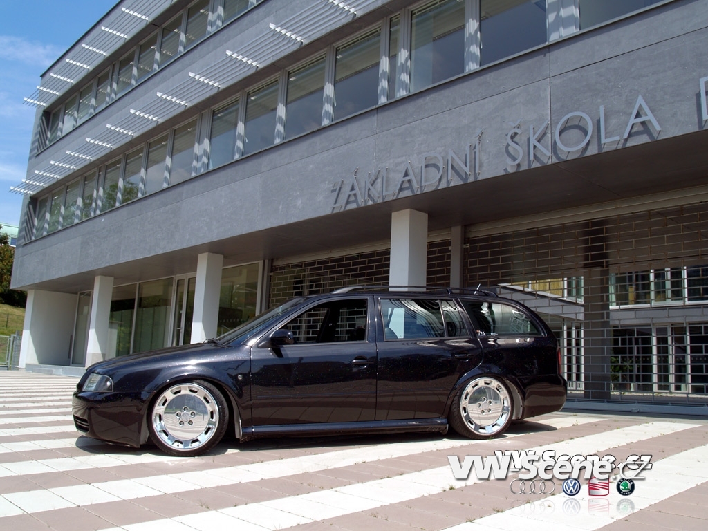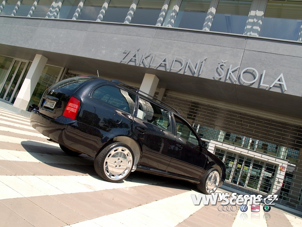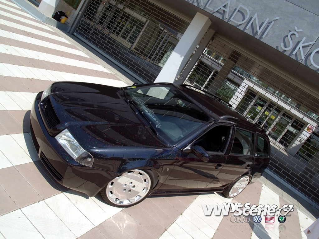 Čistá, hladká a ladná, taková je tahle Octavia combi. Jak jste si už na některém z letošních srazů všimli, úpravy aut se pomalu začínají stáčet spíše k těm decentnějším. Nevidíme tolik laminátových monster a úpravci si začali hledat cestu k materiálu ABS,