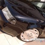 Zahlazený nárazník z modelu RS s výplněmi z tahokovu přepustil místo zahlazenému sériovému modelu s původními plastovými mřížkami. Přední světlomety s dodatečnou montáží xenonových výbojek svírají chladičovou masku od Milotecu, která je, včetně části kapoty, přetažena koženým chráničem. Blatníky dostaly č