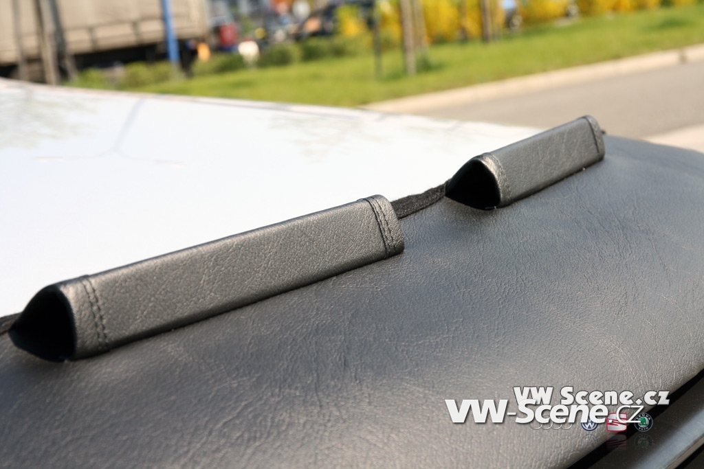 200 koní není jednoduché zkrotit a když se Kuba rozhodně „Verču“ trochu protáhnout, sériový podvozek by rázem dosáhl svých mezních hranic. Výrazně lepší jízdní vlastnosti má nově na svědomí stavitelný tlumičový set od firmy KW, který je seštelován hodně nízko. Vlastně jak jen to šlo, aby se mohl člověk po Praze vůbec pohybovat a neskončil položený na prvním retarderu. Auto sedí v zatáčkách jako přibité. Volbu kol musím Kubovi rozhodně pochválit. Schmidt Revolution o velikosti 7,5×16 a 9×16 jsou prostě klasikou a na trojku padnou dokonale. Společnost jim dělají pneumatiky o rozměrech 205/45 a 215/40. Odpovídající zvýšený brzdný účinek leží na bedrech předních drážkovaných kotoučích ATE o průměru 280 mm.