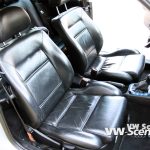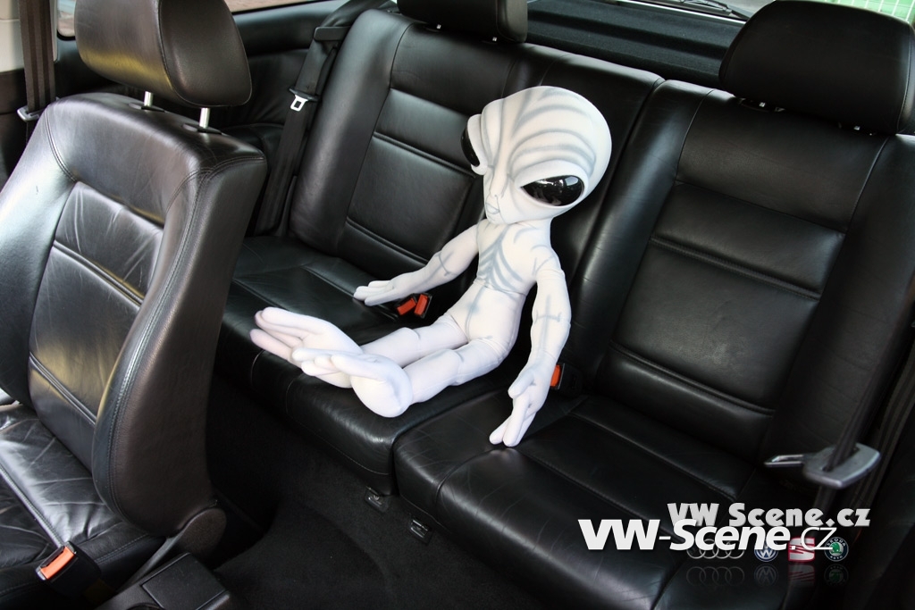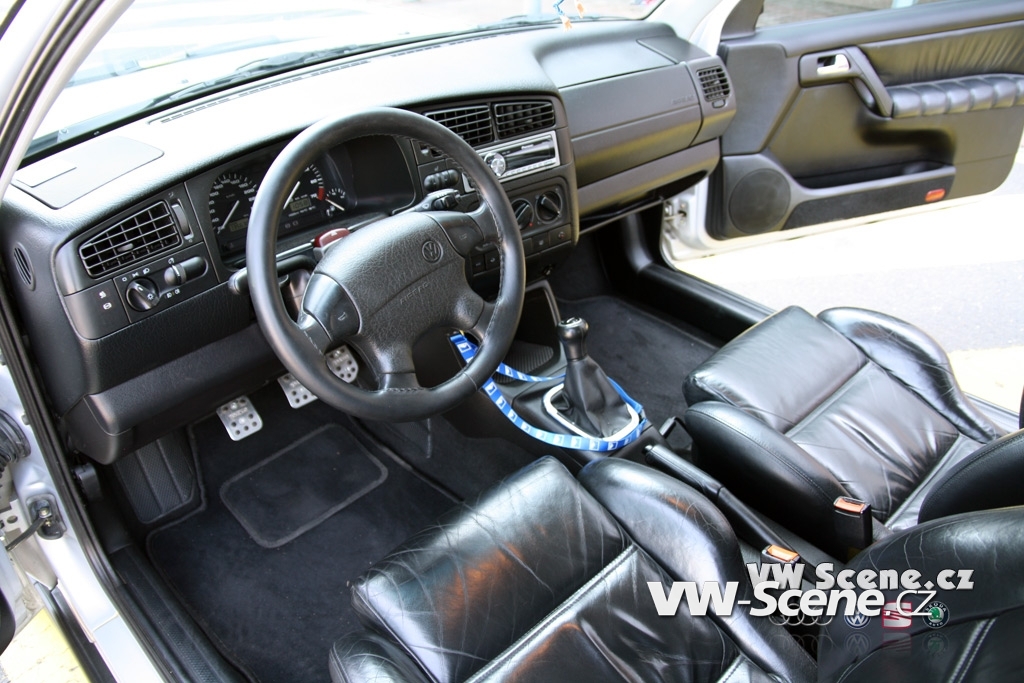 Interiér je laděn jednobarevně, ovšem nic zde nechybí. Je totiž v plné palbě. Vše, co dokázala automobilka Volkswagen v devadesátých letech minulého století nabídnout zde je, výjimku tvoří klimatizace, ta je pouze manuální, ale koho to trápí, že? Celý interiér se pyšní kvalitní kůží. Do ní se oblíkla nejen vyhřívaná anatomická sedadla, ale například i obklady dveří, volant a řadicí páka ze čtvrté generace. Nechybí hliníkové doplňky, jako sportovní pedály Sparco, či kolíky manuálního zavírání dveří s logem Wolfsburg Edition. Ozvučení obstarává přehrávač Pioneer DEH-P5900MP a dvojice předních komponentních reproduktorů. Na hifiaparatuře se ještě trochu zapracuje, chybí tam přeci jen nějaké ty basy.