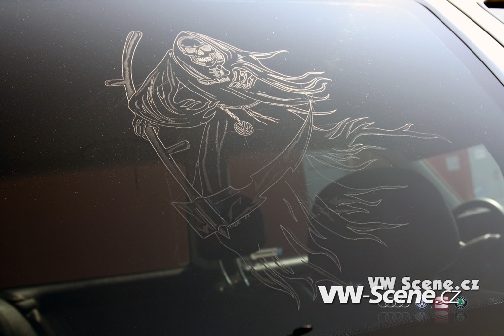 Jasné je, že nynější majitel nekoupil auto jako nové, jednalo se o ojetinu, která nebyla zrovna v nejlepší kondici. Spousta součástí byla poškozena, nebo nefunkční. To ale Kubu neodradilo a postupně vše opravil. Pak se pustil do lehkého tuningu. Mezi něj patří přední světlomety Hella v designu čtvrté generace, zadní lampy Depo s moderní technologií LED, chladičovou masku bez znaku automobilky, kožený převlek části kapoty, vygravírovaný motiv smrťáka na bočním okně a zkrácenou hliníkovou anténu.