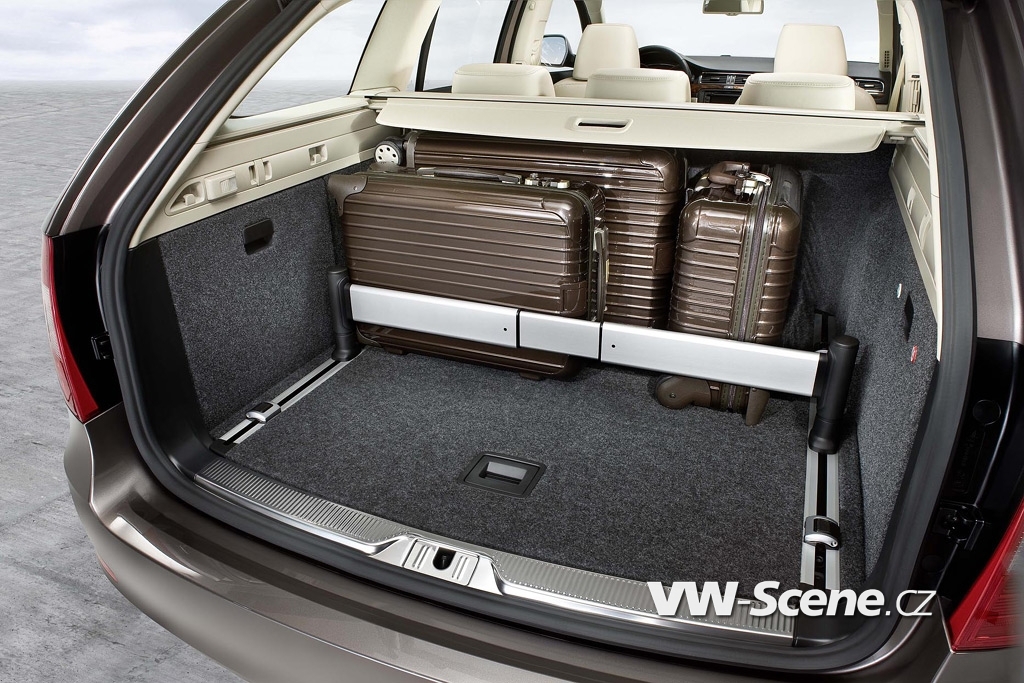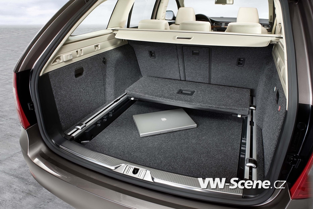 Novinkou Superbu Combi, která se již nějakou dobu objevuje u luxusnějších značek, jsou na přání dodávané elektricky ovládané páté dveře. Takže pokud budete chtít zavřít rozměrné víko kufru, stačí jen zmáčknou čudlík. Dalším zajímavým prvkem v zavazadlovém prostoru je výsuvná mezipodlaha, kterou je možné vysunout až nad zadní nárazník, což rozhodně ulehčuje nakládání rozměrnějších předmětů.