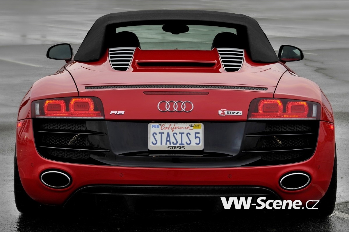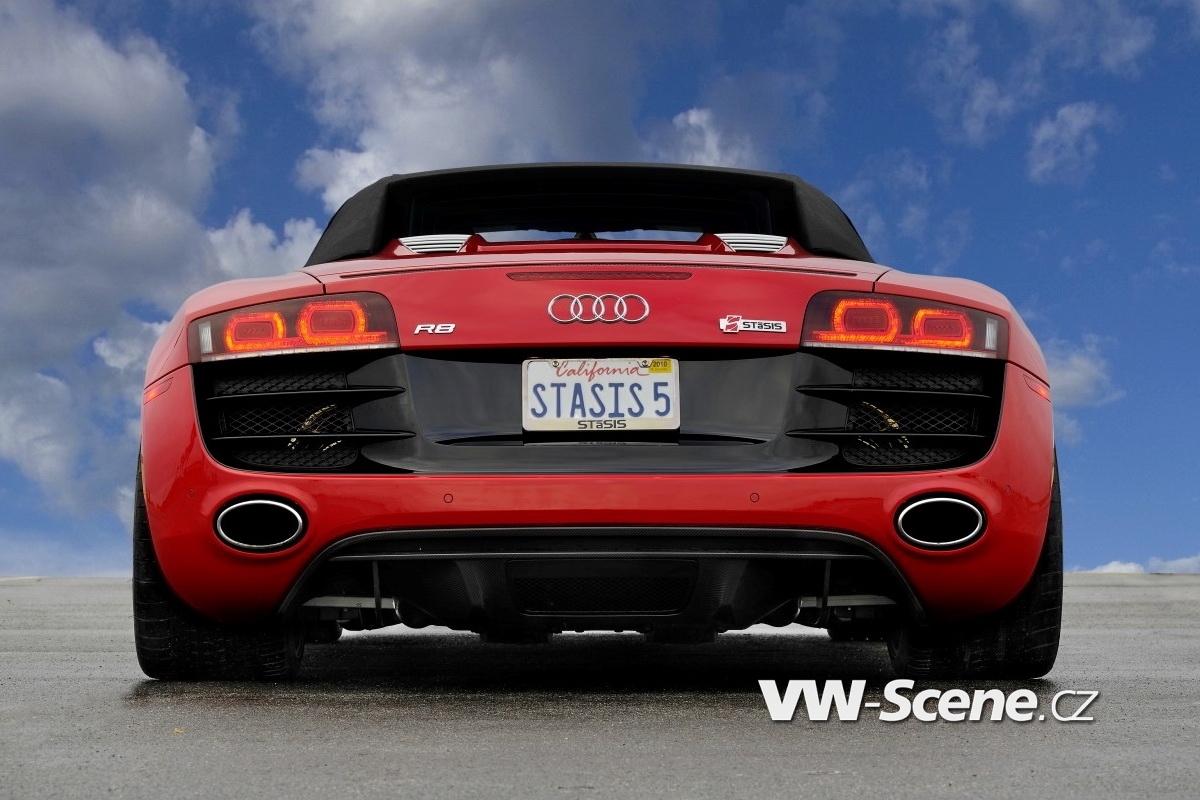 STaSIS Engineering začal jako profesionální kariéru jako řadový prodejce Audi na severoamerickém trhu. Jenomže po chvíli už mu sériové modely přestaly vonět a začal být lehce kreativní. Prvních pár let to byly jen drobné kosmetické změny, menší hardwarové zásahy, ale s jídlem roste chuť a dnes už se směle rovná s evropskými mistry v oboru. Tedy co se aspoň audin týká. Jeho posledním a asi i nejodvážnějším počinem bylo Audi R8 V10 Spyder, jehož výkon měl být posunut minimálně o padesát procent.