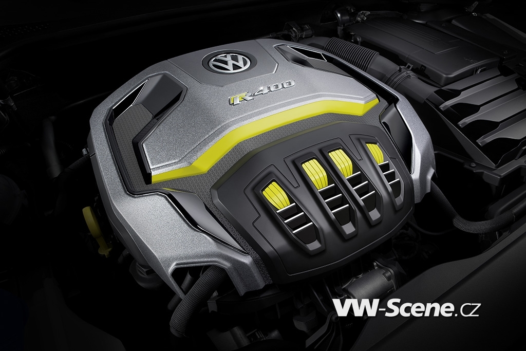 200 k na litr zdvihového objemu. Golf R 400 je poháněn motorem 2.0 TSI s technickými geny soutěžního motoru WRC. V porovnání s Golfem R o výkonu 221 kW/300 k dosahuje Golf R 400 přesně o 100 k vyššího výkonu. Řidič tak má k dispozici 294 kW/400 k (při 7200 min-1) – tedy 200 koňských sil na litr zdvihového objemu. Tento specifický výkon dosahuje úrovně supersportovního vozu. Maximální točivý moment vzrostl o 70 na 450 N.m (mezi 2400 a 6000 min-1).