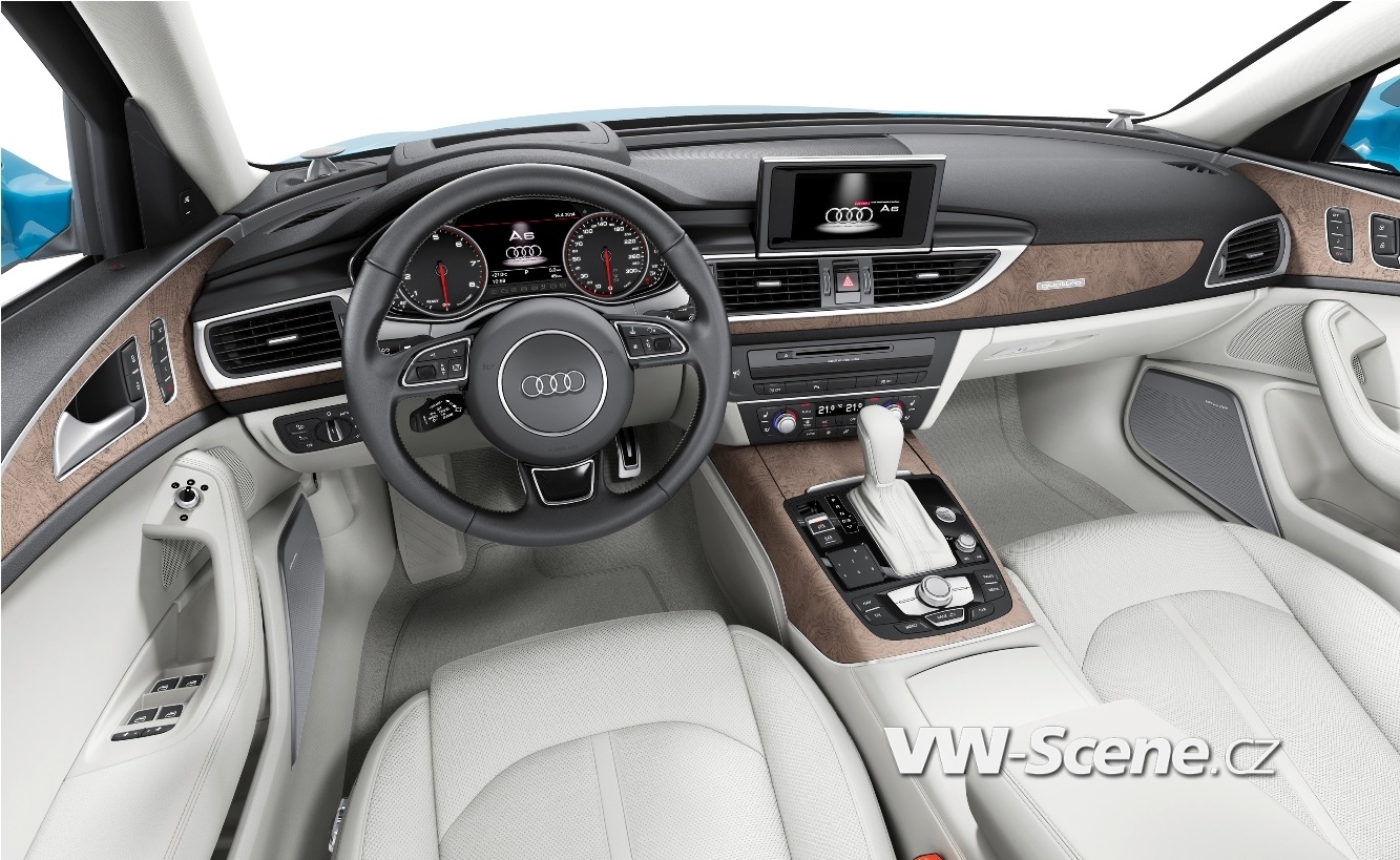 Prostorný interiér navazuje na atletický vzhled exteriéru. Všechny detaily dokládají nekompromisní kvalitu, kterou důvěrně znají řidiči vozů Audi. Elegantní barvy a pečlivě vybrané materiály umocňují kultivovanou atmosféru. Mimořádně náročné zákazníky osloví nová nabídka paketů Audi design selection v barvách interiéru šedá Flint (modely A6) a červená Arras (S6).