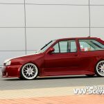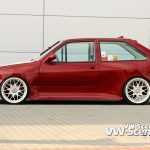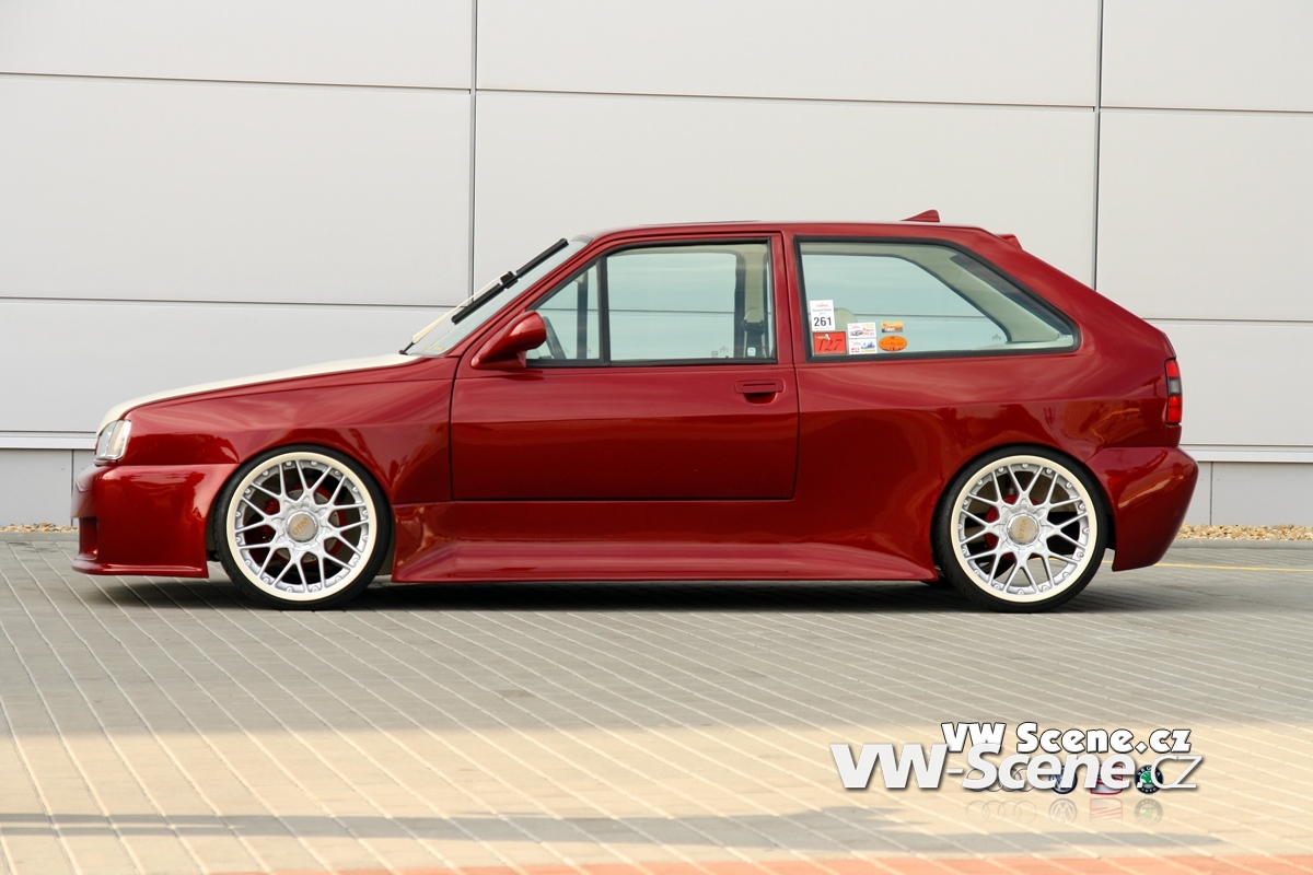 Model Polo coupé není v našich krajích moc rozšířený, právě proto si ho Roman Křížek vyhlédl. Jeho finální rozhodnutí navíc podpořil i vynikající technický stav. Mohl si klidně koupit nějakého toho Golfa, ale těch jezdí v Čechách mraky. Po tuningových úpravách Romana je Polo mnohem širší a nižší. Může za to individuální přestavba blatníků, které se roztáhly na každé straně o neuvěřitelných 15 centimetrů. Celkové snížení vozu je 8 centimetrů. A autu to náramně prospělo.