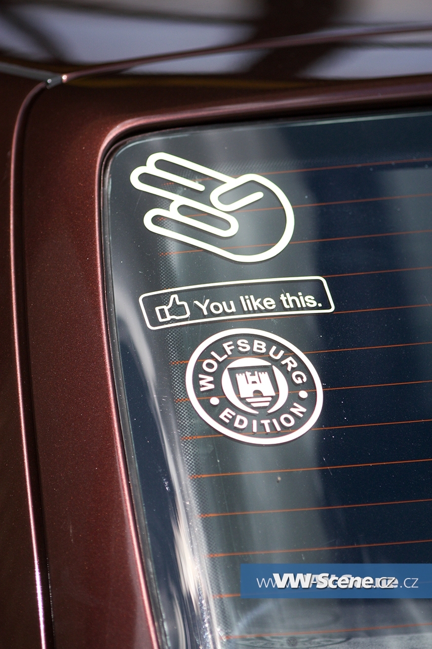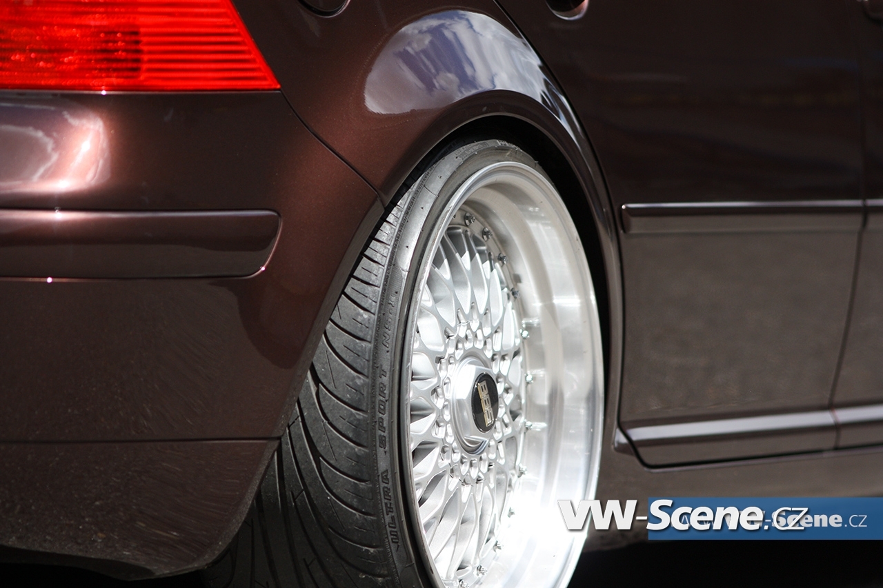 Jak velí poslední trend tuningové scény, co možná nejvíce využít tvarů samotného vozu a pokud možno, zapomenout na spoilery. Hlavním vzorem se stala americká verze oblíbeného Golfu IV. Tímto směrem byl upraven přední nárazník s originální lištou bez výkroje pro RZ, bílá poziční světla a v přední části vozu byl zavařen prolis znaku doplněný o dvoulamelovou masku FK. Klasická halogenová světla nahradily xenony, zrcátko spolujezdce povyrostlo a zadní nárazník včetně světel šel do US verze. Bez povšimnutí nezůstaly ani páté dveře, kde zmizel znak a klika. Vše doplňuje hnědá metalíza, kterou lakoval Igor Sarudi.