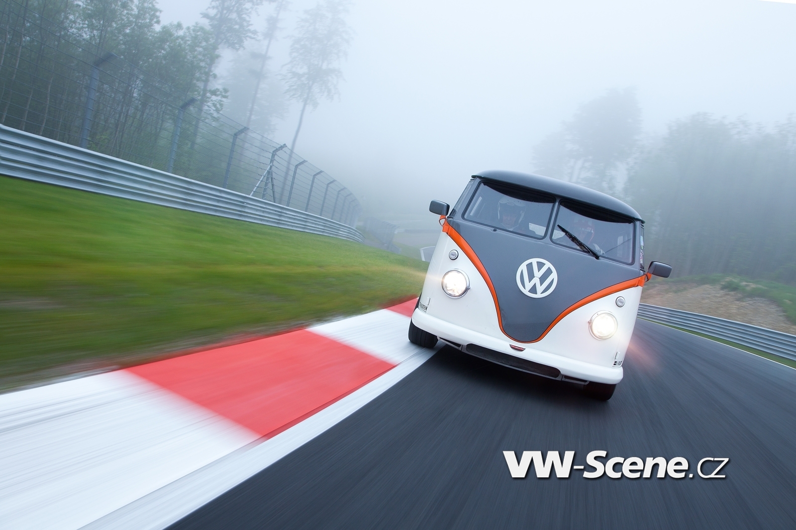 Pokud se postavíte před zdánlivě „neškodný“ VW Bus Freda Bernharda, vyučeného karosáře ze Švýcarska, pak se budete při důkladnější prohlídce téměř nevěřícně ptát, jak může někoho něco takového vůbec napadnout. Odpověď na otázku přichází rychle a přesvědčivě: „Byla to pro mě profesionální výzva. Chtěl jsem zjistit, co je realizovatelné.“ Výsledek je pozoruhodný: Bernhard dokázal během šesti let zabudovat do původně prorezavělého vozu VW Bus T1 z roku 1962 vzduchem chlazený hliníkový šestiválec včetně řízení a brzdové soustavy z modelu Porsche 993 Bi-Turbo. Enormní hnací sílu (maximální točivý moment 757 N.m) přenáší šestistupňová mechanická převodovka z modelu 996 GT3 na třídílná závodní kola BBS s pneumatikami rozměru 285/30/18. Transporter pro expresní přepravu, který váží díky velkorysému použití uhlíkových kompozitů pouhých 1500 kg, je díky uvedenému poháněcímu ústrojí a podvozku skutečně připraven pro nasazení na závodním okruhu, což dokazuje i výkonová hmotnost jen 3,8 kg/kW, s níž se vyrovná čistokrevným sportovním vozům.