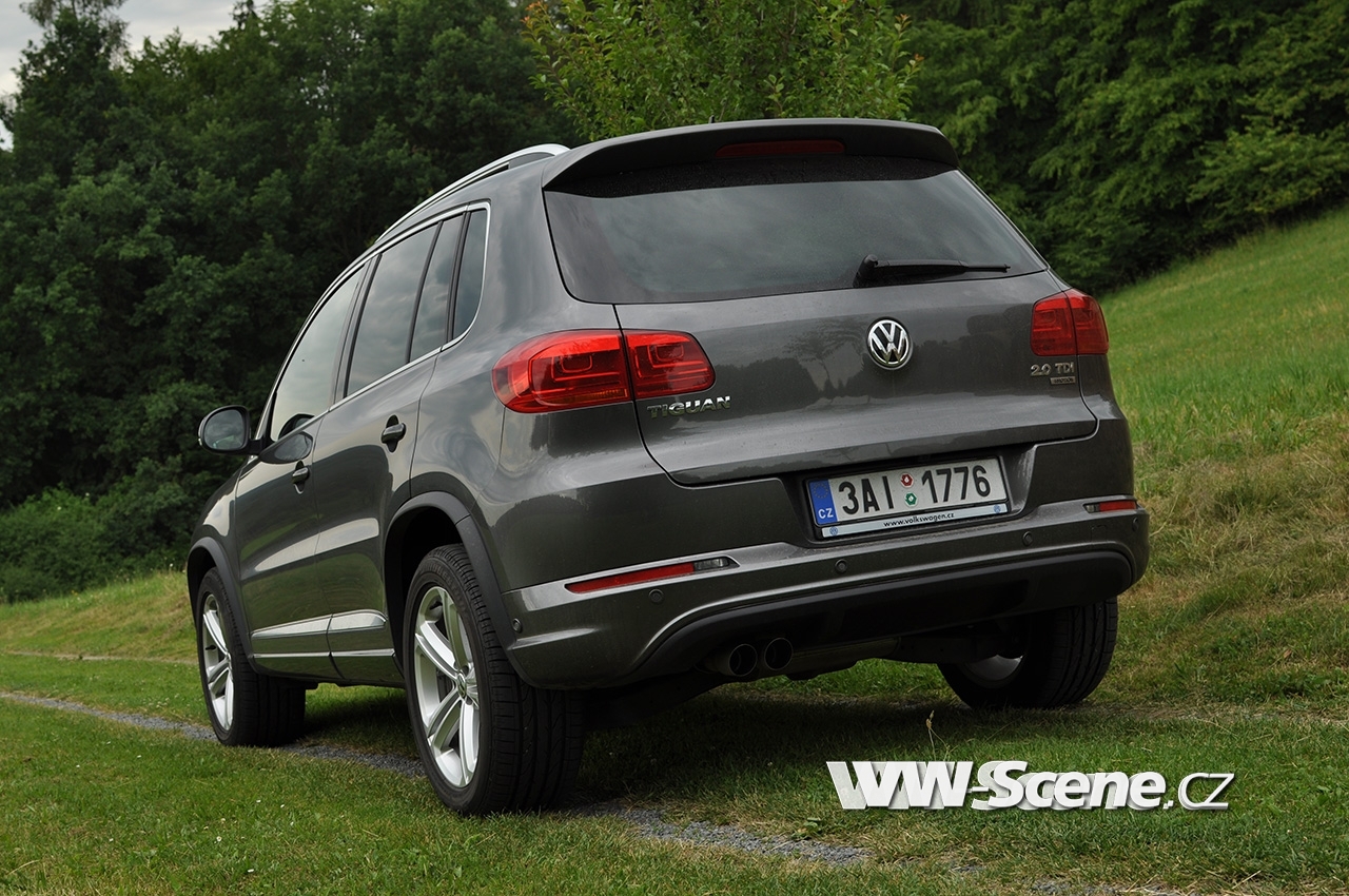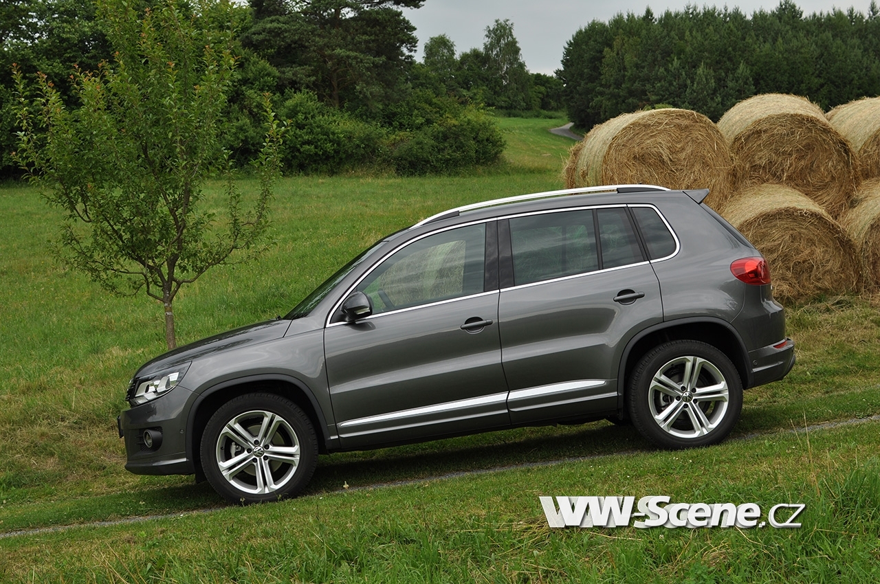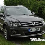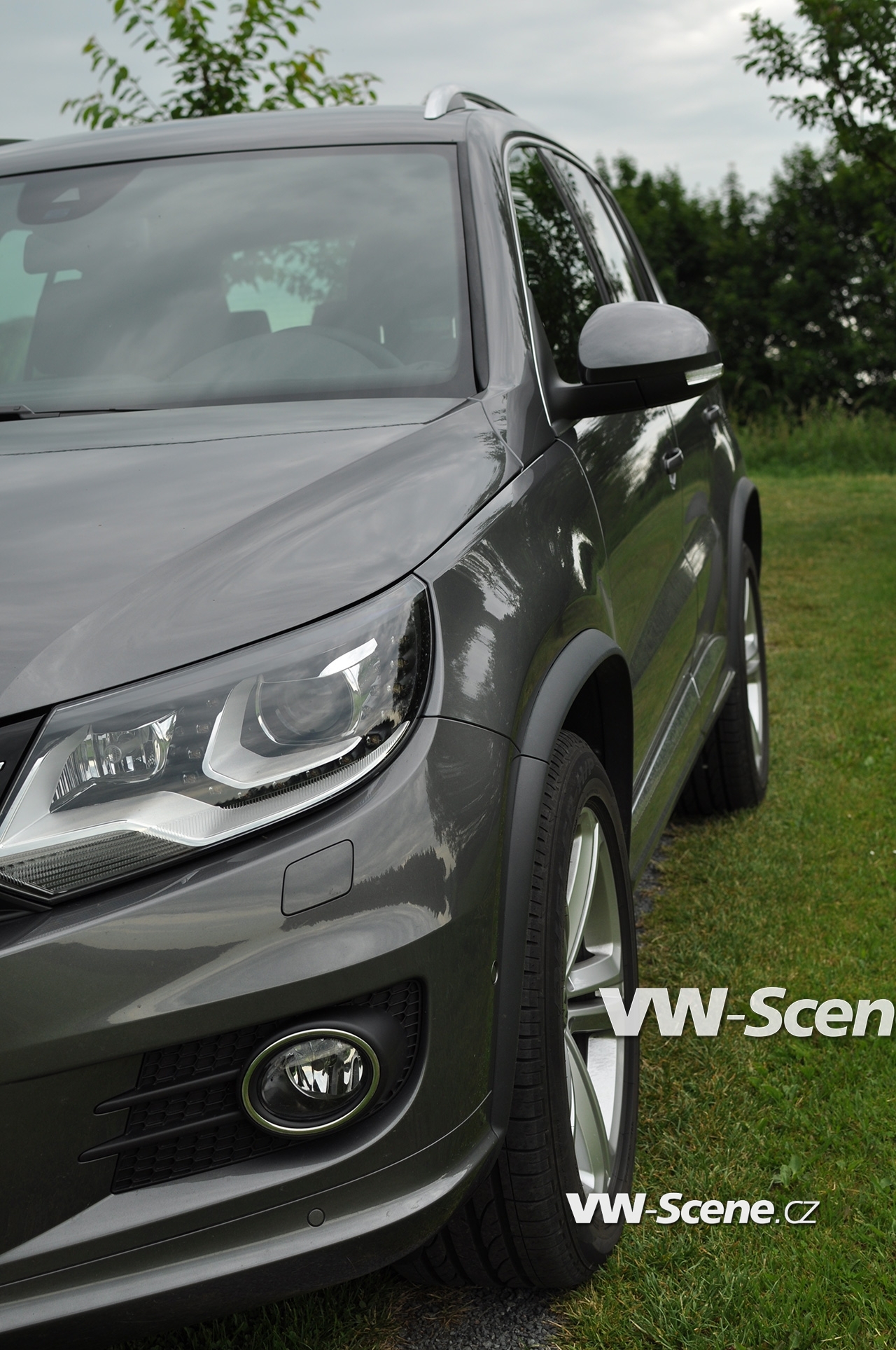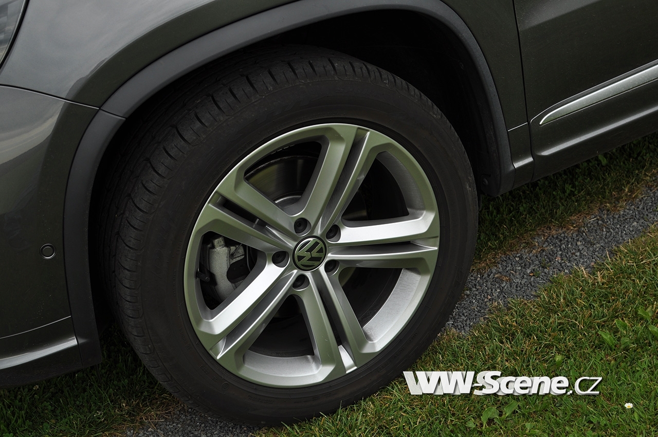 Vypisovat všechny vymoženosti nového Volkswagen Tiguan by bylo na malou knížku, a ne na malý redakční test webu VW-scene.cz. Do ruky se nám dostal suverénním a cílevědomým způsobem se prezentující Tiguan s paketem R-Line. Jeho sportovně vyladěný podvozek je zárukou radosti při každé jízdě, kola z lehké slitiny „Mallory“ o rozměru 8 J x 18, lakovaná stříbrnou barvou „Sterling“, obutá pneumatikami 235/50 R18 a lemovaná rozšířenými blatníky, okamžitě pozná sportovní charakter tohoto vozu. Alternativně mohou být kola „Mallory“ také ve velikosti 9 J x 19 s pneumatikami o rozměru 255/40 R19. Nejlépe jej můžete řídit prostřednictvím pedálů z ušlechtilé oceli a multifunkčního volantu v kůži s logem „R-Line“. Dalšími prvky, které na sebe upoutají pozornost, jsou plakety s logem „R-Line“ na bocích automobilu vpředu a nástupní prahové lišty z ušlechtilé oceli s logem „R-Line“. Pod kapotou se skrýval dvoulitrový naftový turbomotor s BlueMotion Technology, která ukázala velkou tažnou sílu při současně nízké spotřebě paliva.