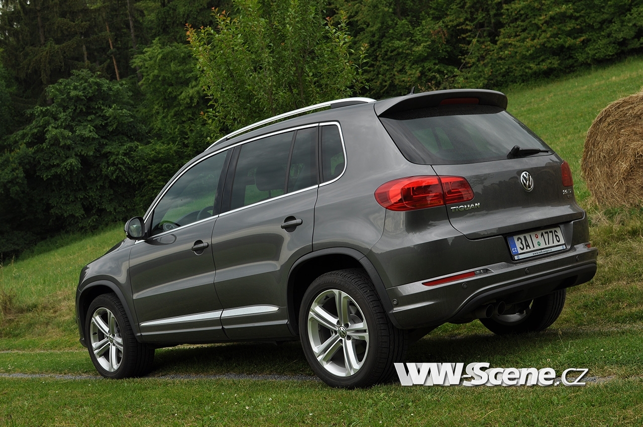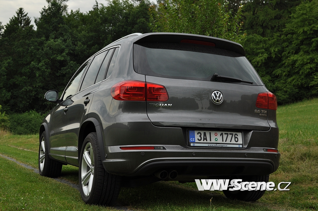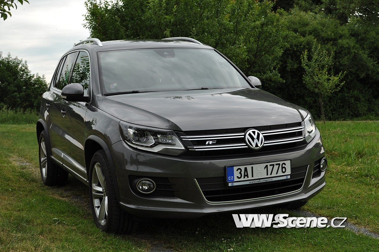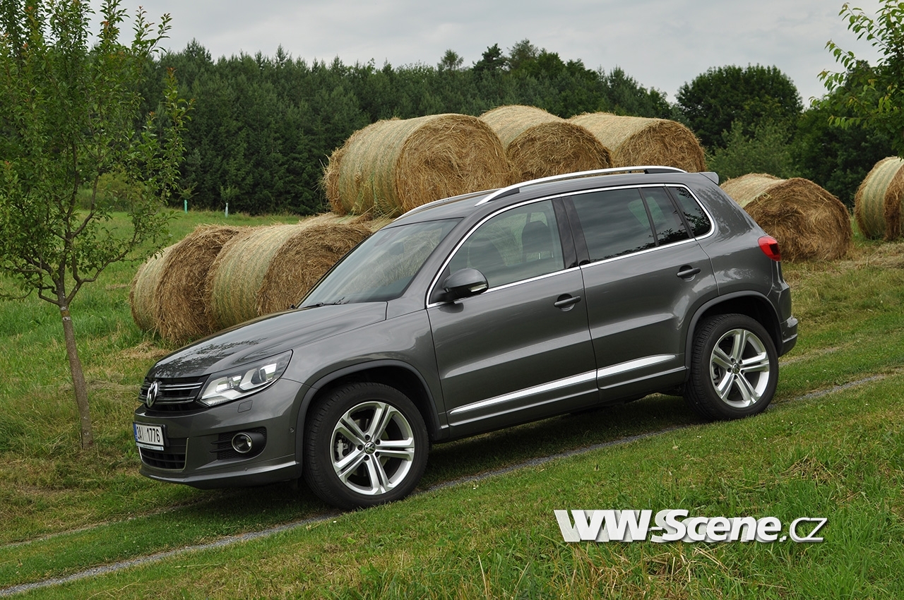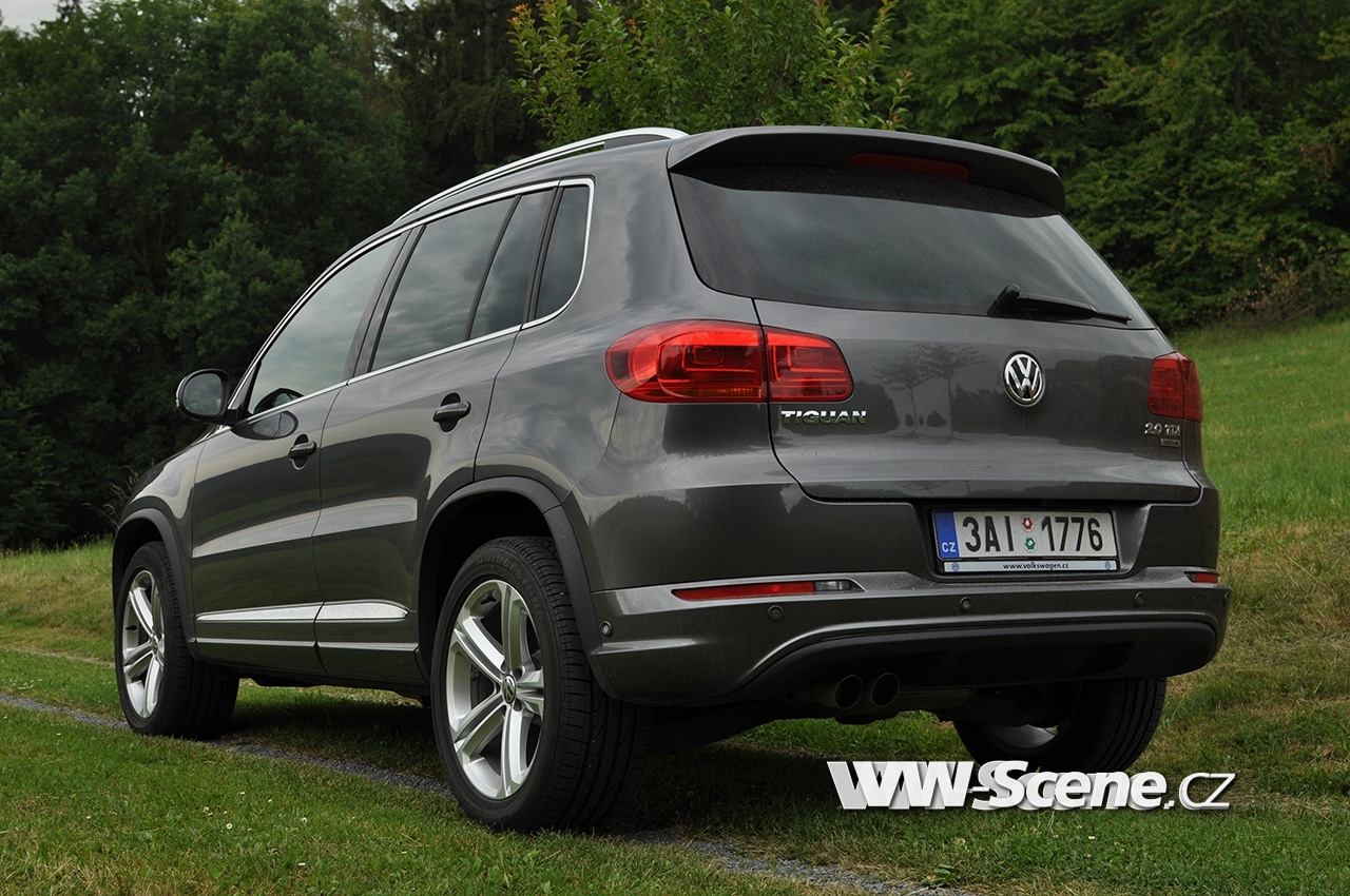 Vypisovat všechny vymoženosti nového Volkswagen Tiguan by bylo na malou knížku, a ne na malý redakční test webu VW-scene.cz. Do ruky se nám dostal suverénním a cílevědomým způsobem se prezentující Tiguan s paketem R-Line. Jeho sportovně vyladěný podvozek je zárukou radosti při každé jízdě, kola z lehké slitiny „Mallory“ o rozměru 8 J x 18, lakovaná stříbrnou barvou „Sterling“, obutá pneumatikami 235/50 R18 a lemovaná rozšířenými blatníky, okamžitě pozná sportovní charakter tohoto vozu. Alternativně mohou být kola „Mallory“ také ve velikosti 9 J x 19 s pneumatikami o rozměru 255/40 R19. Nejlépe jej můžete řídit prostřednictvím pedálů z ušlechtilé oceli a multifunkčního volantu v kůži s logem „R-Line“. Dalšími prvky, které na sebe upoutají pozornost, jsou plakety s logem „R-Line“ na bocích automobilu vpředu a nástupní prahové lišty z ušlechtilé oceli s logem „R-Line“. Pod kapotou se skrýval dvoulitrový naftový turbomotor s BlueMotion Technology, která ukázala velkou tažnou sílu při současně nízké spotřebě paliva.