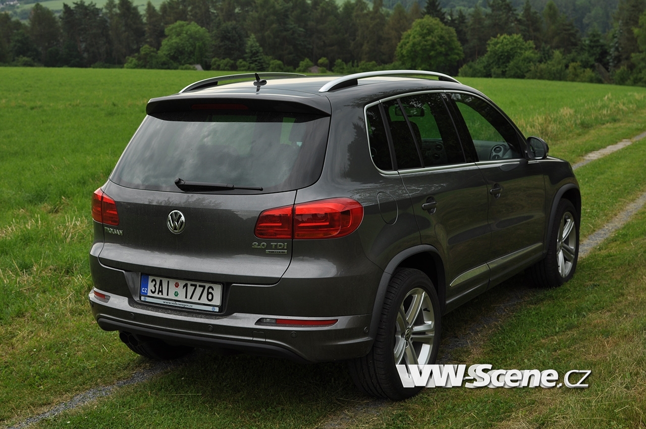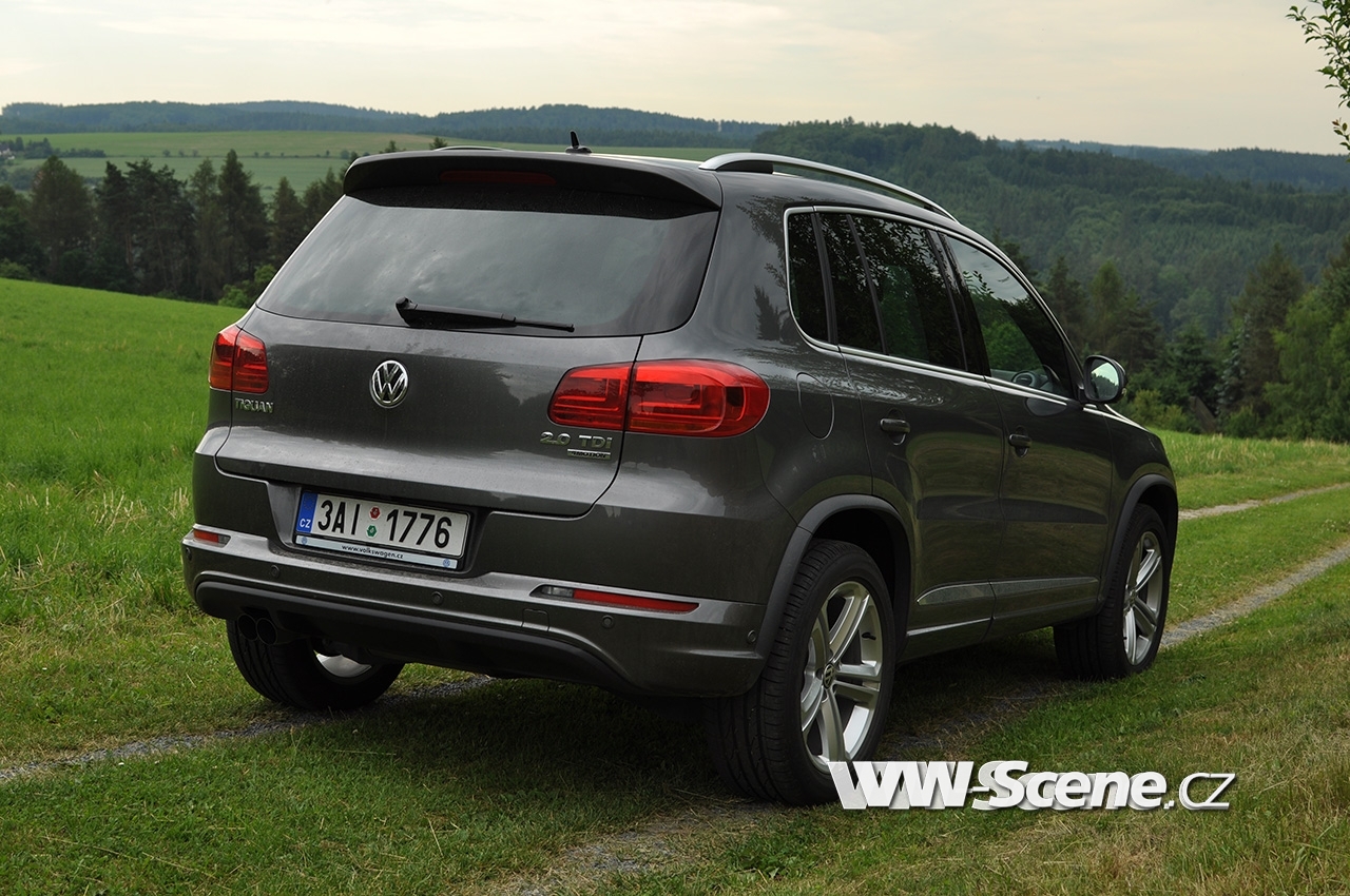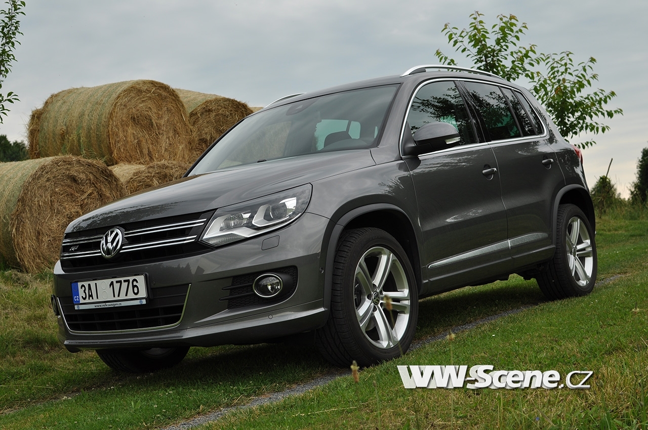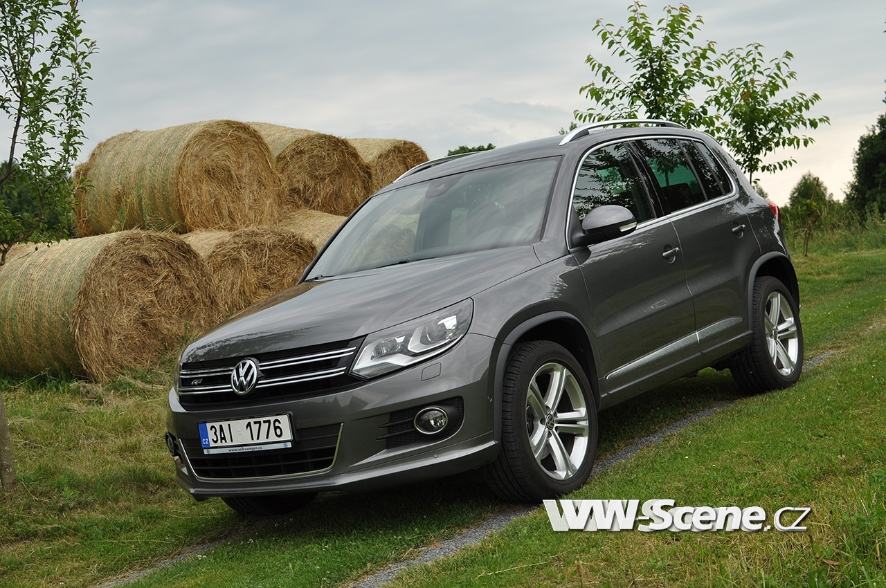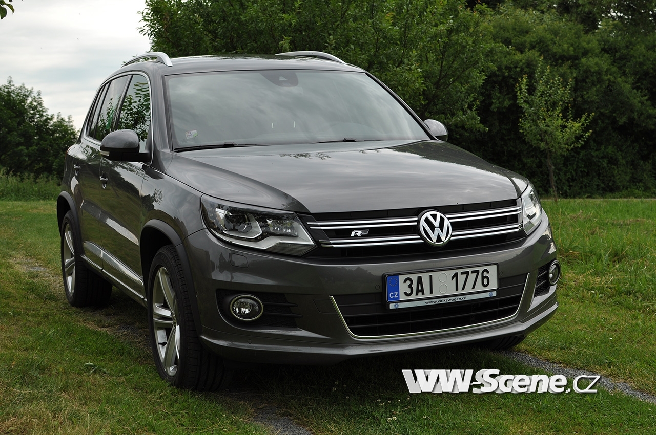 Vypisovat všechny vymoženosti nového Volkswagen Tiguan by bylo na malou knížku, a ne na malý redakční test webu VW-scene.cz. Do ruky se nám dostal suverénním a cílevědomým způsobem se prezentující Tiguan s paketem R-Line. Jeho sportovně vyladěný podvozek je zárukou radosti při každé jízdě, kola z lehké slitiny „Mallory“ o rozměru 8 J x 18, lakovaná stříbrnou barvou „Sterling“, obutá pneumatikami 235/50 R18 a lemovaná rozšířenými blatníky, okamžitě pozná sportovní charakter tohoto vozu. Alternativně mohou být kola „Mallory“ také ve velikosti 9 J x 19 s pneumatikami o rozměru 255/40 R19. Nejlépe jej můžete řídit prostřednictvím pedálů z ušlechtilé oceli a multifunkčního volantu v kůži s logem „R-Line“. Dalšími prvky, které na sebe upoutají pozornost, jsou plakety s logem „R-Line“ na bocích automobilu vpředu a nástupní prahové lišty z ušlechtilé oceli s logem „R-Line“. Pod kapotou se skrýval dvoulitrový naftový turbomotor s BlueMotion Technology, která ukázala velkou tažnou sílu při současně nízké spotřebě paliva.