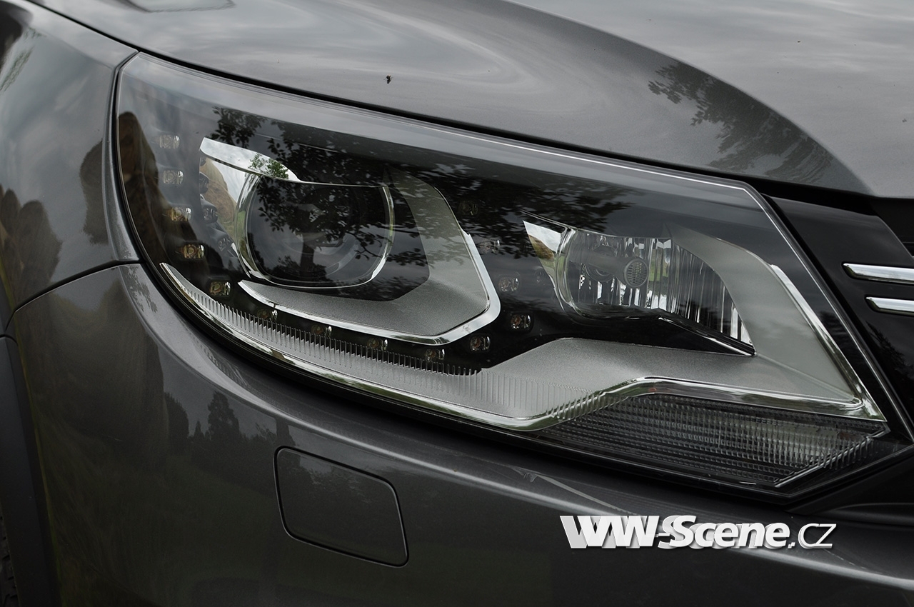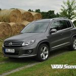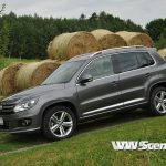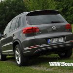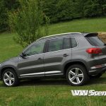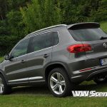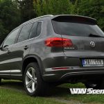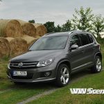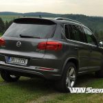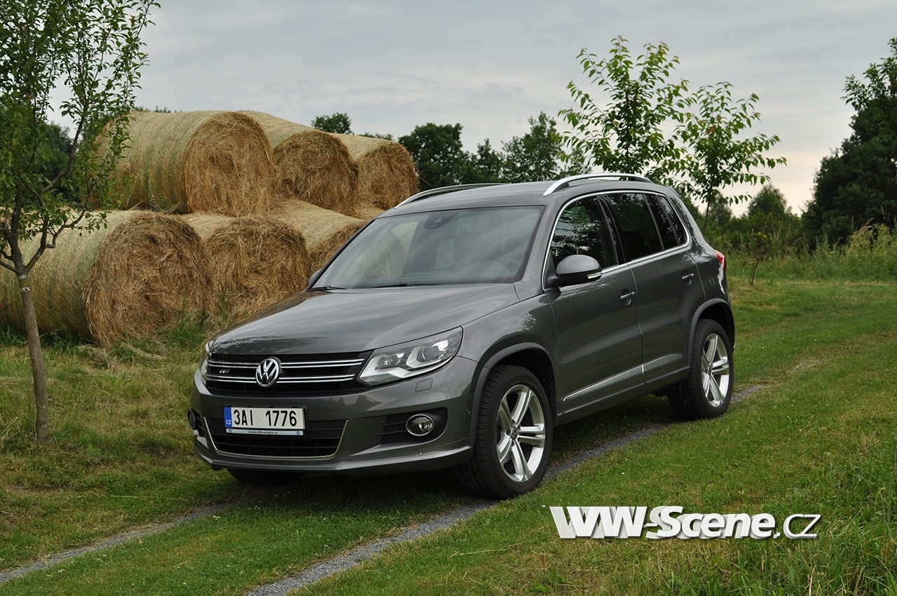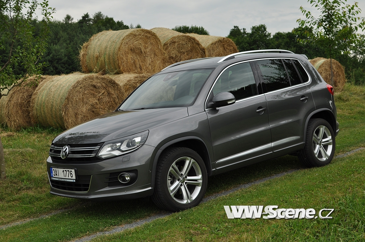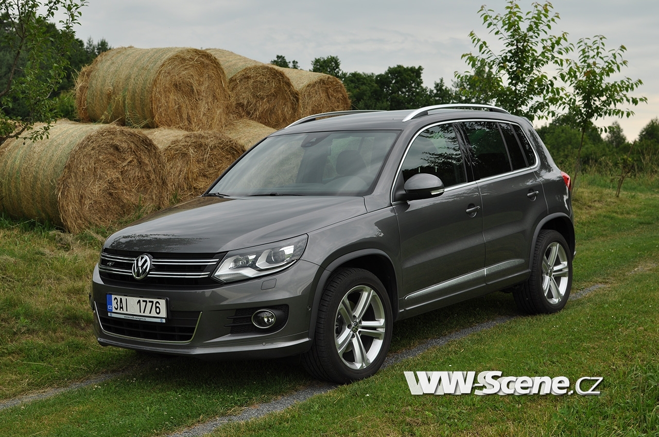 Vypisovat všechny vymoženosti nového Volkswagen Tiguan by bylo na malou knížku, a ne na malý redakční test webu VW-scene.cz. Do ruky se nám dostal suverénním a cílevědomým způsobem se prezentující Tiguan s paketem R-Line. Jeho sportovně vyladěný podvozek je zárukou radosti při každé jízdě, kola z lehké slitiny „Mallory“ o rozměru 8 J x 18, lakovaná stříbrnou barvou „Sterling“, obutá pneumatikami 235/50 R18 a lemovaná rozšířenými blatníky, okamžitě pozná sportovní charakter tohoto vozu. Alternativně mohou být kola „Mallory“ také ve velikosti 9 J x 19 s pneumatikami o rozměru 255/40 R19. Nejlépe jej můžete řídit prostřednictvím pedálů z ušlechtilé oceli a multifunkčního volantu v kůži s logem „R-Line“. Dalšími prvky, které na sebe upoutají pozornost, jsou plakety s logem „R-Line“ na bocích automobilu vpředu a nástupní prahové lišty z ušlechtilé oceli s logem „R-Line“. Pod kapotou se skrýval dvoulitrový naftový turbomotor s BlueMotion Technology, která ukázala velkou tažnou sílu při současně nízké spotřebě paliva.