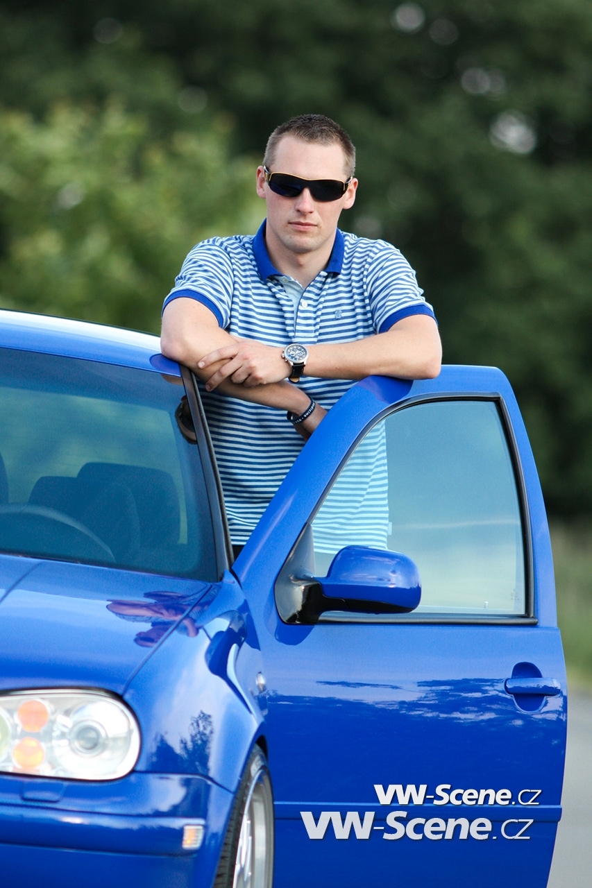 A sám k tomu dodává: „Celý život jsem byl „nafťák“. Až jednou jsem si sjel s Golfem GTI…a oslnily mě výkonové parametry tohoto stroje. Proto jsem začal na tuzemském trhu shánět podobné vozidlo, ale nedařilo se. Až surfování na zahraničním automobilovém portálu přineslo kýžený výsledek. Konečně jsem ho našel, modrý GOLF GTI mě uhranul. Od té doby, co jsem si ho přivezl, trávím veškerý volný čas v garáži při úpravách na jeho exteriéru i interiéru, údržbě a vylepšování, leštěnky i autošampony od všech možných výrobců jsou stále v permanenci. A potom už nasedám, startuji a přidám plyn. V tu chvíli zaznamenávám, že zde tlučou dvě srdce v dokonale stejném rytmu.“