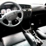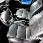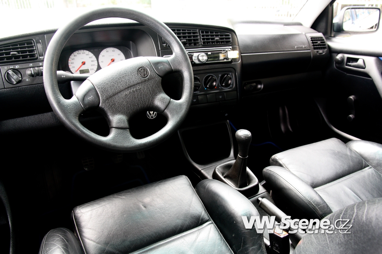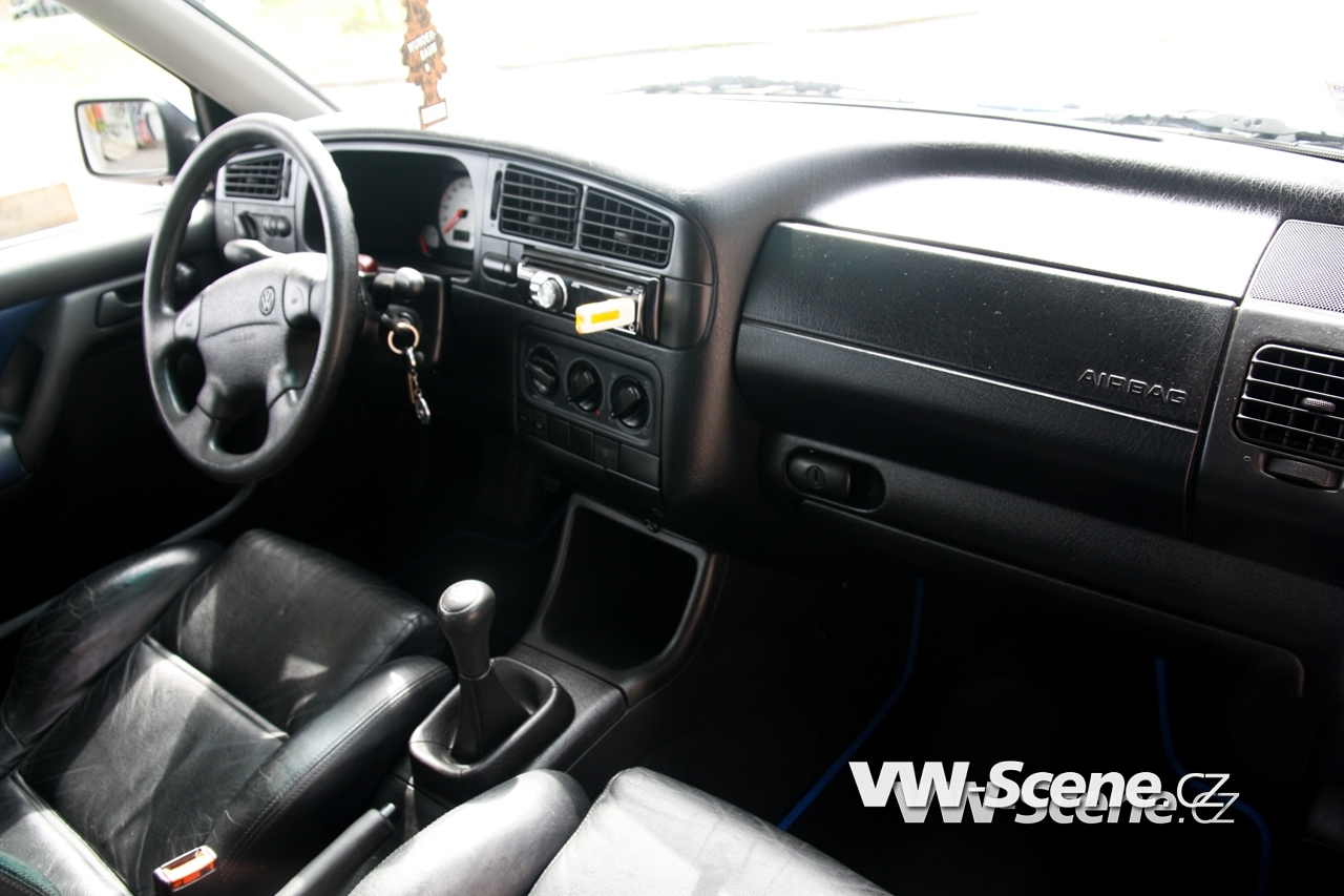 V interiéru jsou kožené sedačky z Golf VR6 a tapecy z Color Concept. Koberečky dostaly modré obšití a o hudbu se stará autoradio JVC. Tomu pomáhá čtařkanálový zesilovač JBL (4x600W), a vpředu budí reproduktory též JBL.