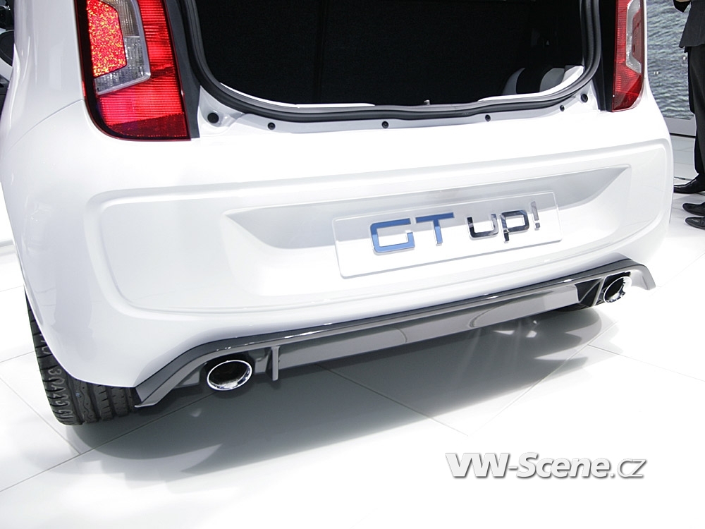 Zadní části dominuje střešní spoiler a dvojitý výfukový systém s chromovanými koncovkami. Interiér VW GT-Up je v barvě uhlí – antracid. I přes sportovní ambice, které má mini-sportovec z Wolfsburgu, má být jeho spotřeba do 5 litrů na 100 km.