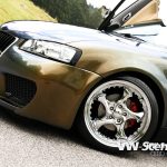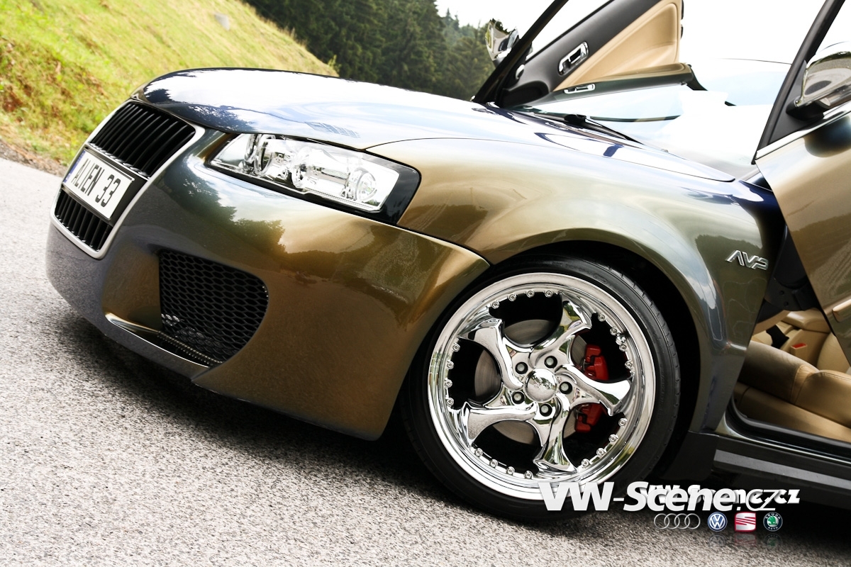 David se netají, na rozdíl od některých českých úpravců, tím, že auto koupil už částečně upravené. Provedené úpravy odpovídaly jeho stylu, tak proč si nešetřit trochu té práce a peněz. Ovšem nezůstal u již provedených změn a dále upravuje auto dle svých představ. Na autě jsou dominantní dvě věci. Jednak je to přední nárazník s obrovskou maskou chladiče z moderních Audi a také odstín karoserie. Ten není jednoduché přesně definovat. Z každého úhlu má totiž trochu jiný nádech. Ti znalejší už vědí, že se jedná o tzv. lak chameleón, který dokáže hrát hned několika barvami najednou.