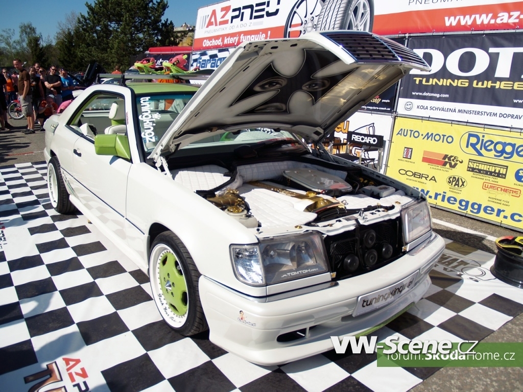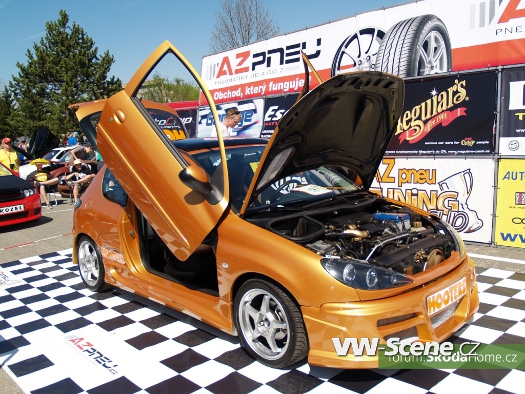 Při letošní premiéře se sešlo 75 soutěžících, pro které bylo nachystáno 13 základních kategorií. Prostor soutěže nebyl příliš velký a doslova praskal ve švech, ale vládla v něm dobrá atmosféra a k vidění byla spousta pěkných aut. První kolo AZ pneu Tuning Cupu si nenechal ujít ani nikdo z trojice loňských vítězů. Karel Buzický se Škodou Favorit opět vládnul Škoda Scene (vozy Škoda Favorit a Felicia), Martin Slepička s Peugeotem 306 zase nedal šanci nikomu z francouzských vozů. A Lukáš Černý, celkový vítěz sezóny 2011? Tak ten začal přesně tam, kde na finále skončil, a to na stupínku nejvyšším. Jeho červená Škoda Fabia byla totiž zvolena absolutně nejlepším vozem srazu.